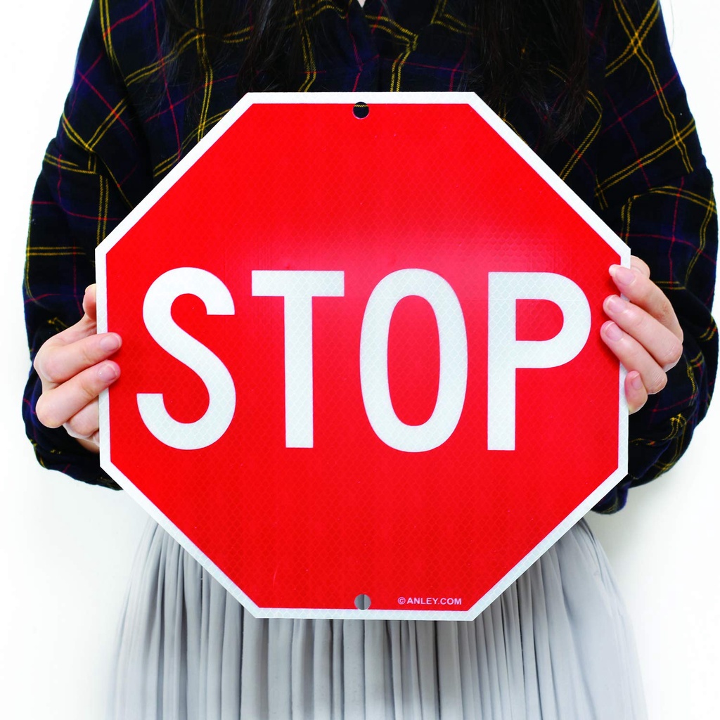 Anley 12X12-In Stop Sign - Diamond Grade Reflective at Nights - Street Road Slow Warning Metal Warning Signs