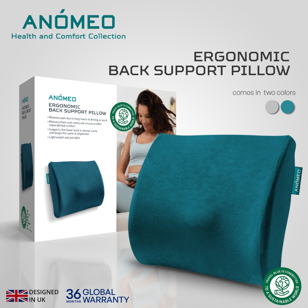 Anomeo Ergonomic Back Support Pillow (Lumbar Support Memory Foam Cushion for Home, Office, Car)