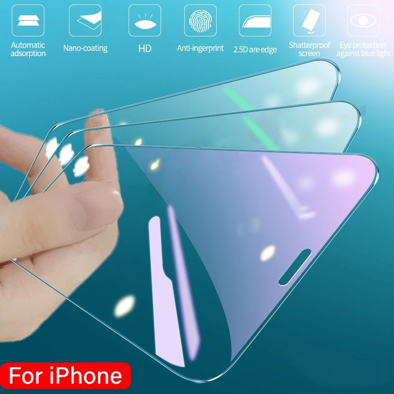 Anti-Bluelight Tempered Glass for iPhone 11 12 13 Pro MAX X XS MAX XR 6 7 8 Plus SE 2020 12 13 mini Screen Protector Full Coverage Eye Protection Glass