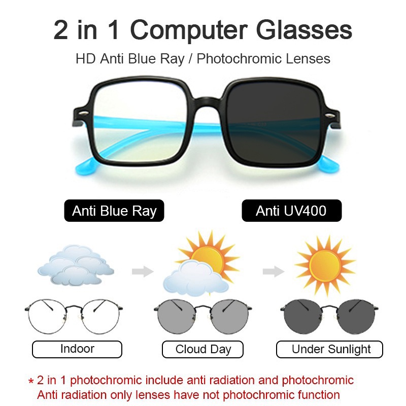 Anti Radiation Eyeglass For Kid Photochromic Anti Radiation Eye Glasses TR90 Frame Antiblue Light Computer Eyewea Frame Replaceable Lens