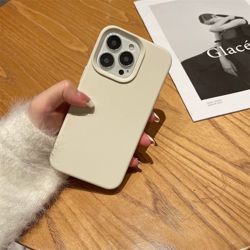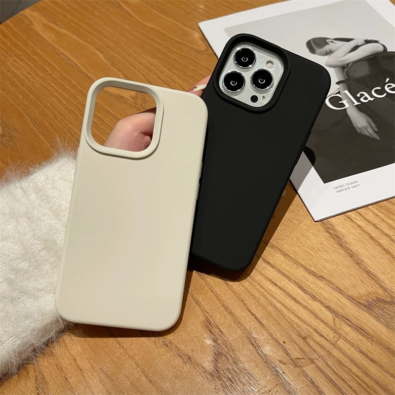 Antique White Liquid Full Silicone Case Compatible for iPhone 16 15 14 11 12 13 Mini Pro Max X XR XS Max 7 8 14 15 16 Plus Flocked Soft Case