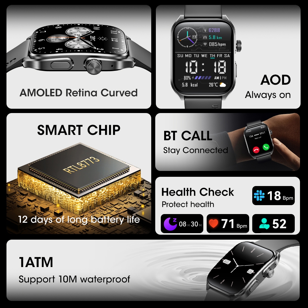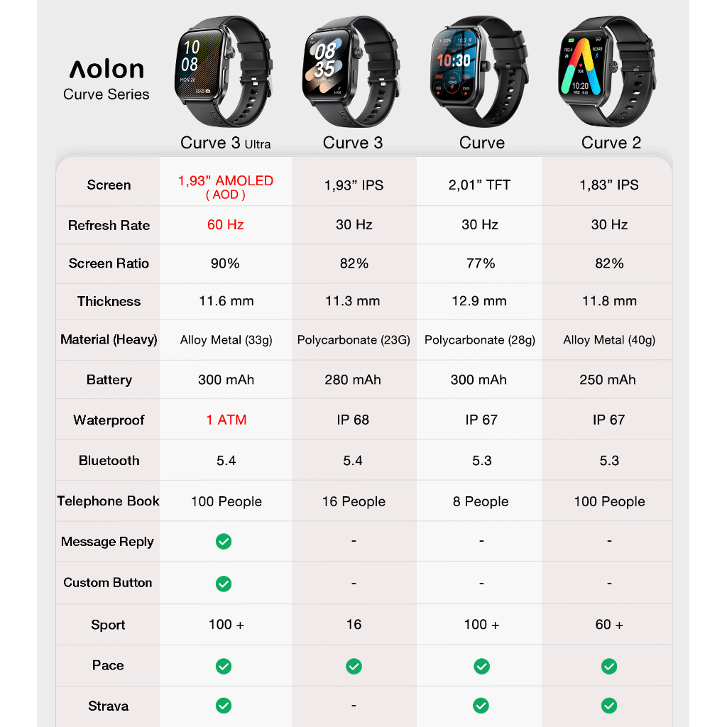 Aolon Curve 3 Ultra Smart Watch 1ATM 60Hz Amoled Message Reply Custom Function Keys Smartwatch 33g