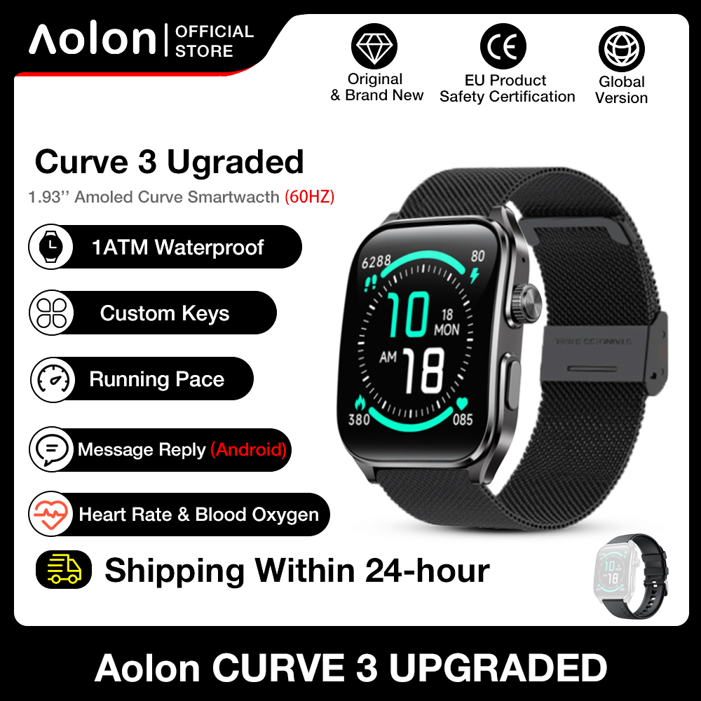 Aolon Curve 3 Ultra Smart Watch 60Hz 1ATM Amoled Running Pace Message Reply AOD Smartwatch(33g)