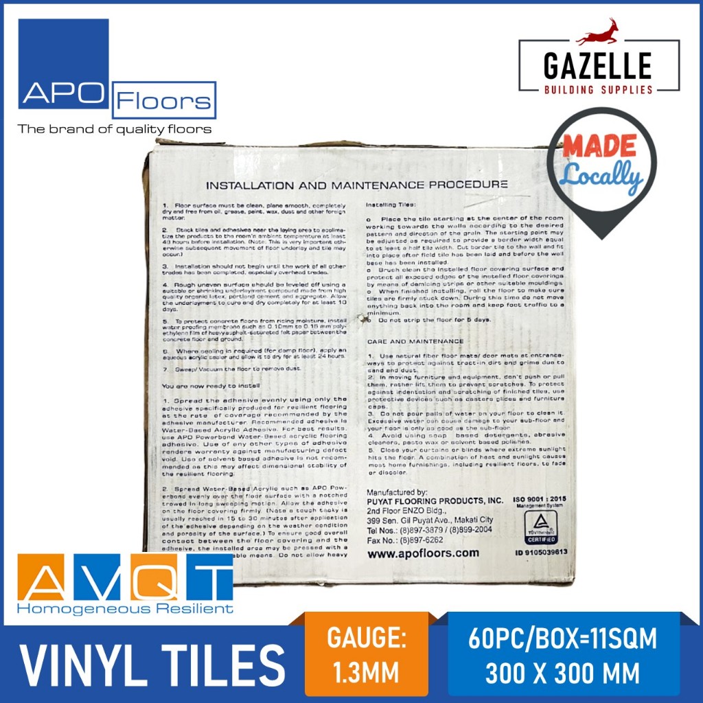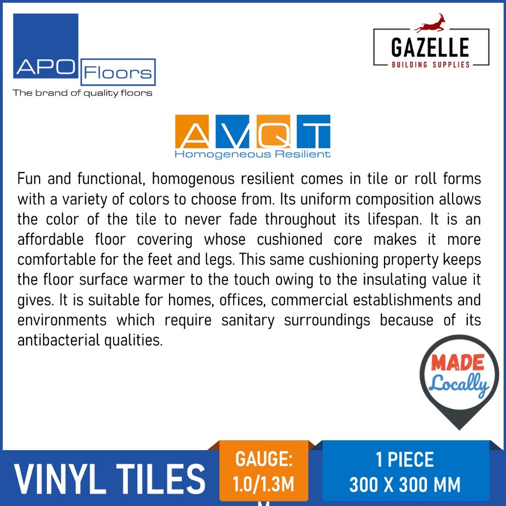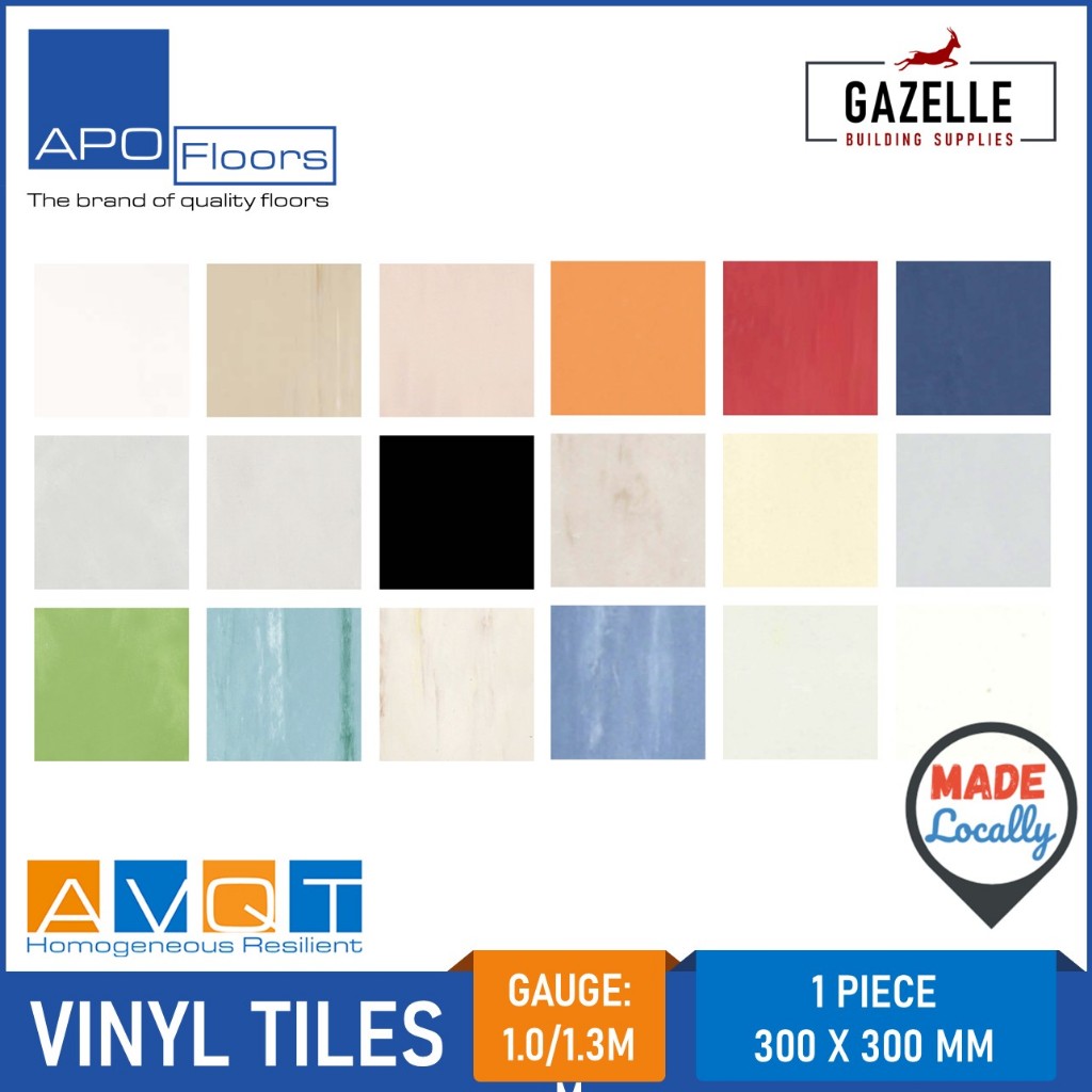 Apo Floor Vinyl Tiles AVQT (18 Colors Available) 1.3mm 60pcs / Box 11.11sqm Coverage 300mm x x300mm