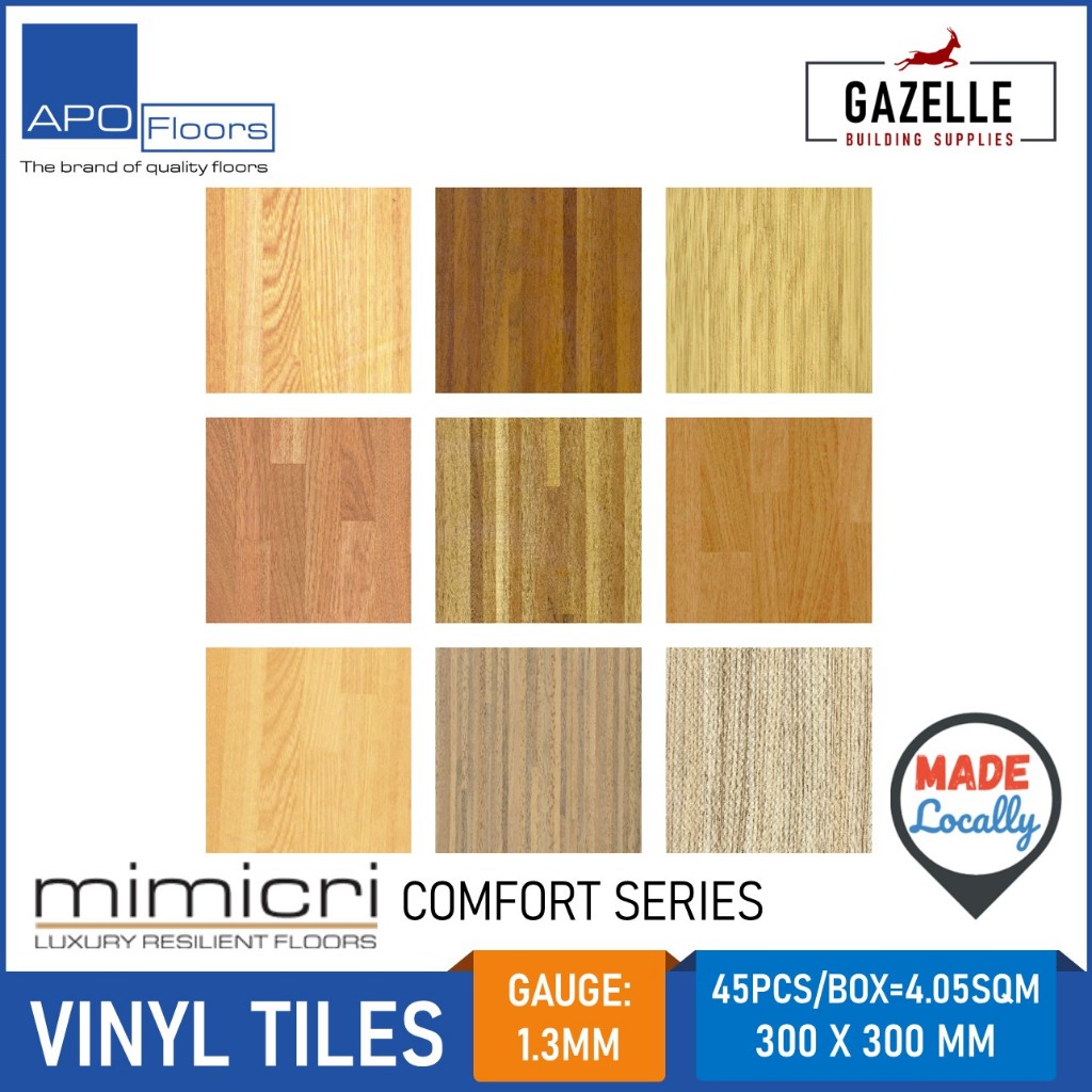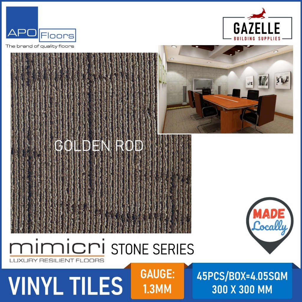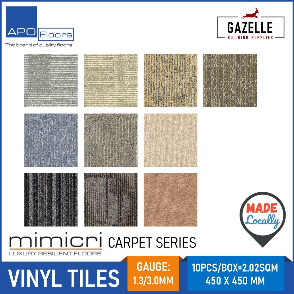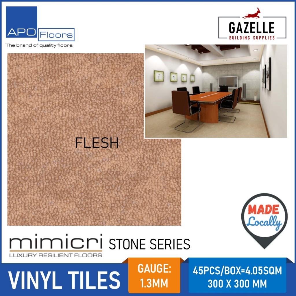 Apo Floor Vinyl Tiles Mimicri Wood, Carpet, and Stone Series 1.3mm Thick 300mm x 300mm 45pcs / Box