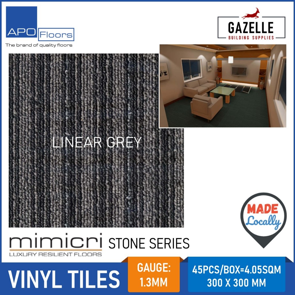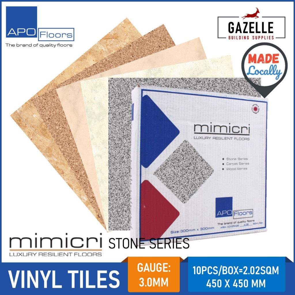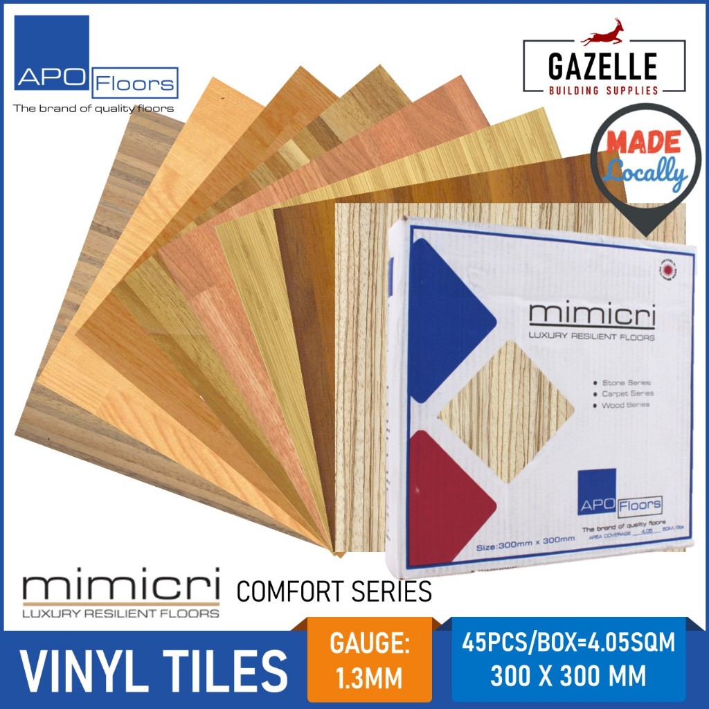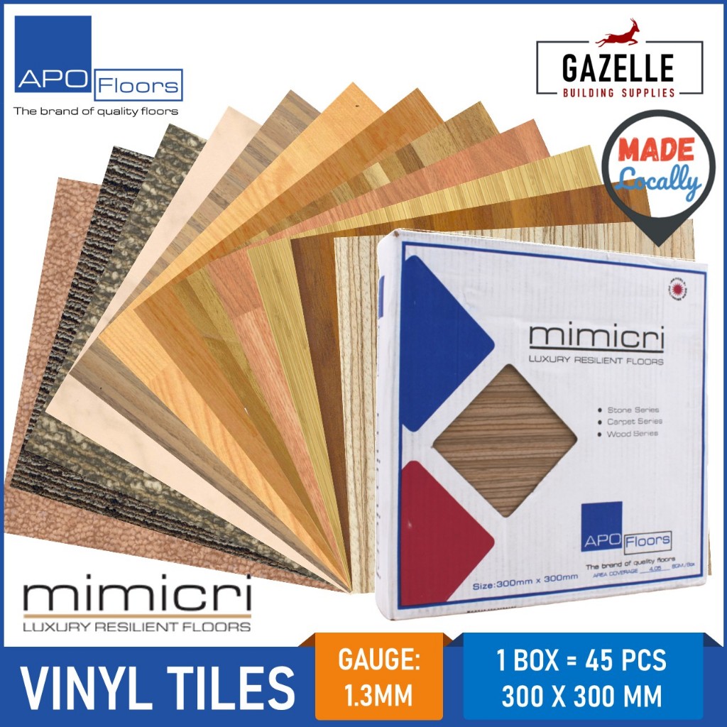 Apo Floor Vinyl Tiles Mimicri Wood, Carpet, and Stone Series 1.3mm Thick 300mm x 300mm 45pcs / Box