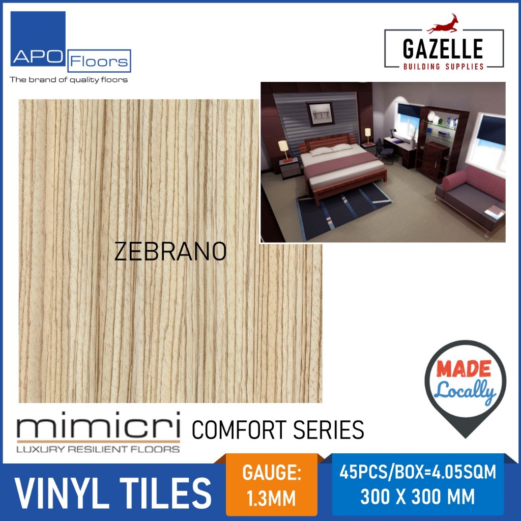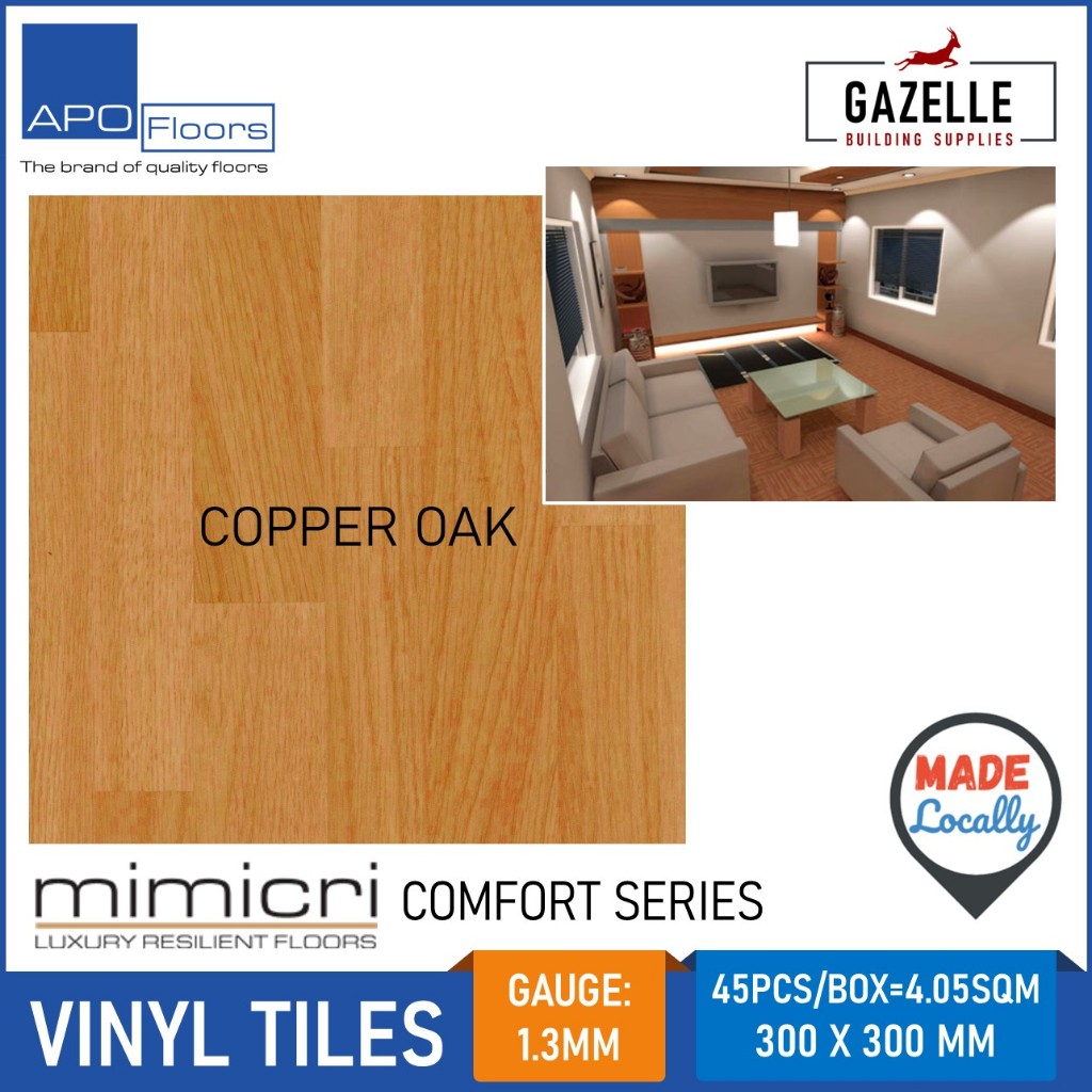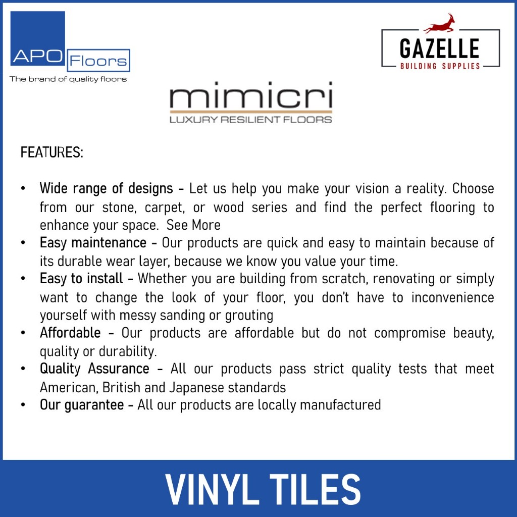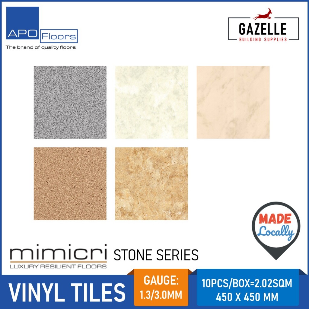 Apo Floor Vinyl Tiles Mimicri Wood, Carpet, and Stone Series 1.3mm Thick 300mm x 300mm 45pcs / Box