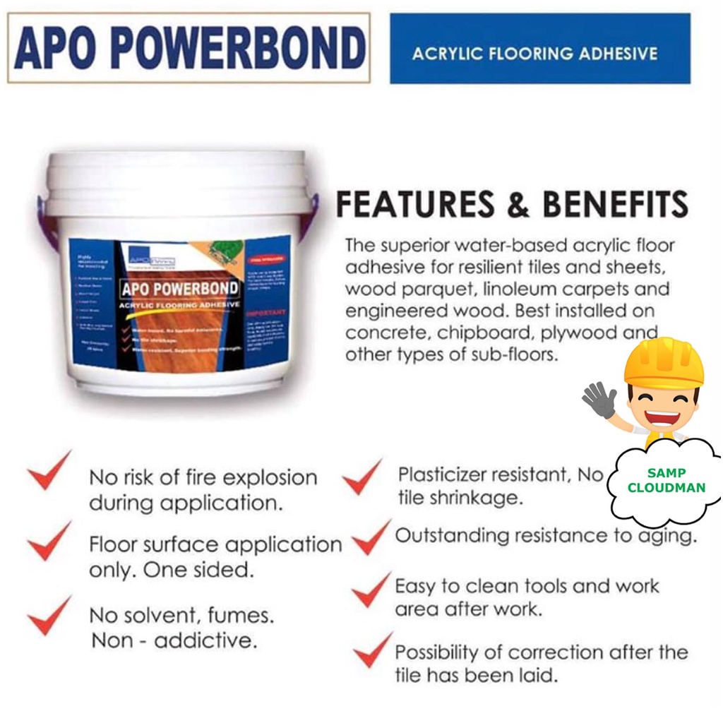 Apo Powerbond Acrylic Flooring Adhesive Gallon Size 5Kg Vinyl Tiles Floor Glue