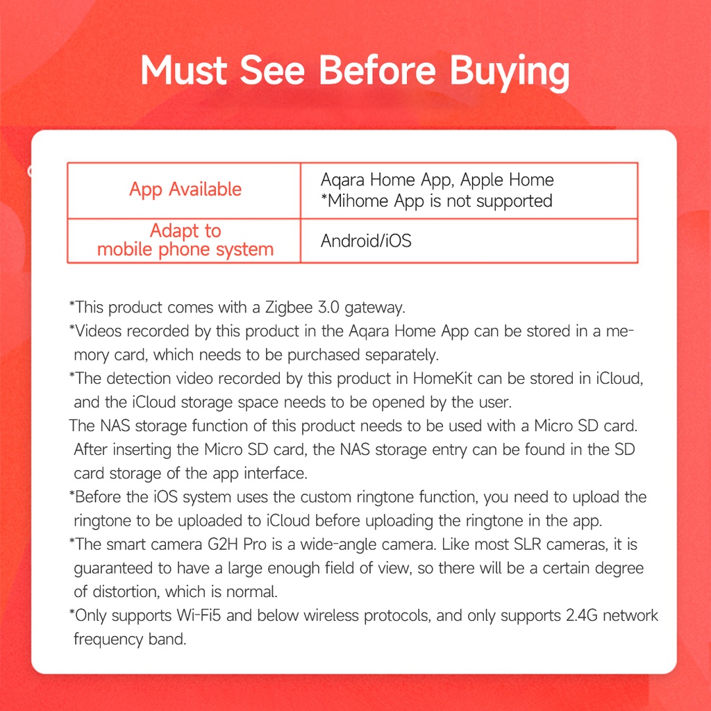 Aqara G2H Camera Pro 1080P HD Night Vision Zigbee For Apple HomeKit APP Smart Home Monitoring Security Camera