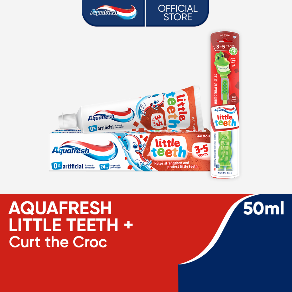 Aquafresh Little Teeth Kids' Toothpaste 50ml with Curt the Croc Little Teeth Toothbrush
