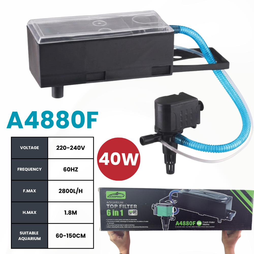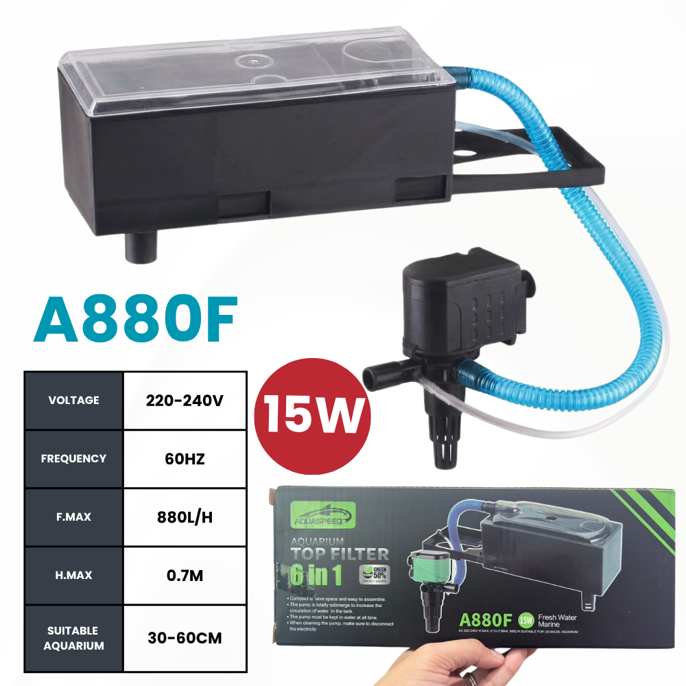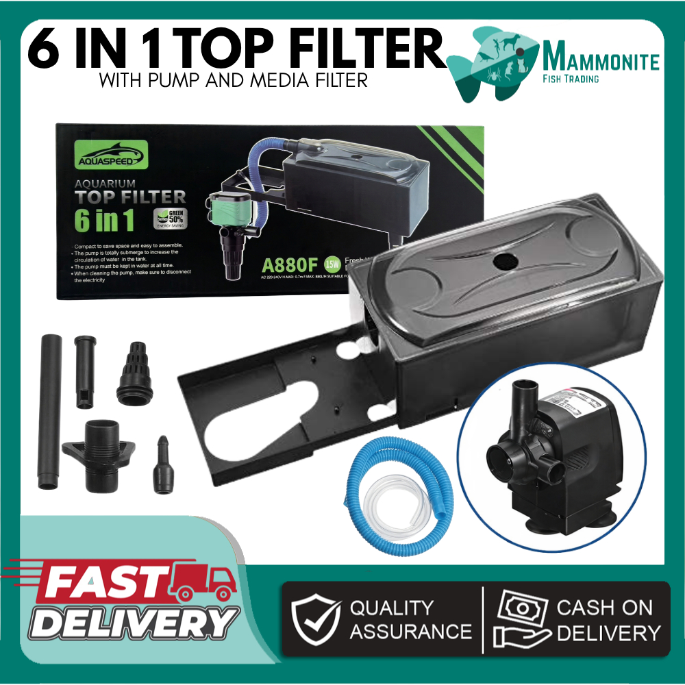 Aquarium 6-in-1 Top Filter Tank Set with Media 15W–40W Water Pump | Freshwater Fish Tank Filtration