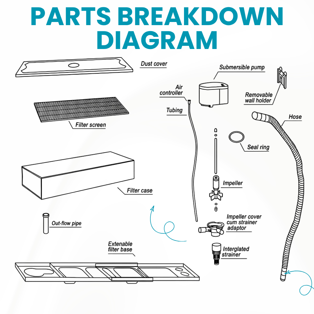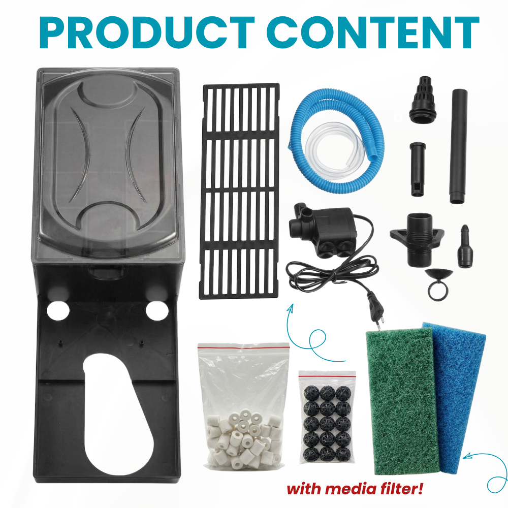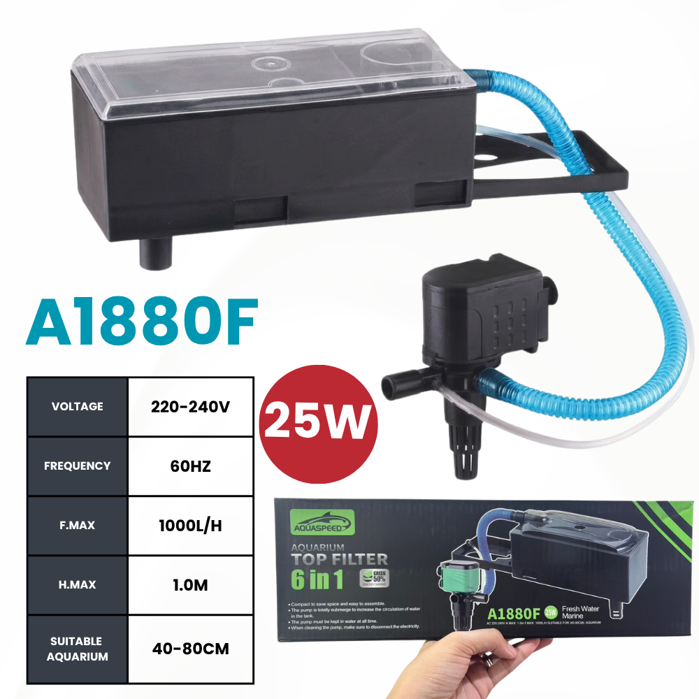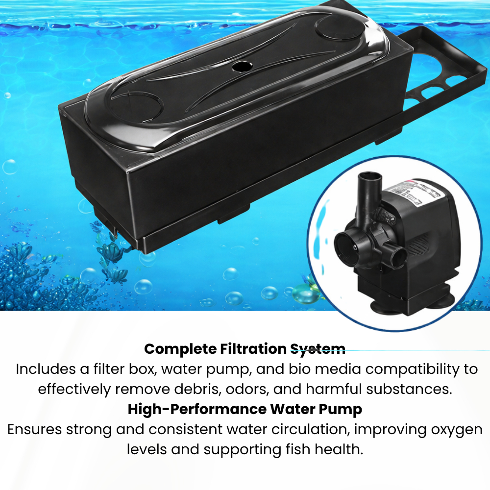 Aquarium 6-in-1 Top Filter Tank Set with Media 15W–40W Water Pump | Freshwater Fish Tank Filtration