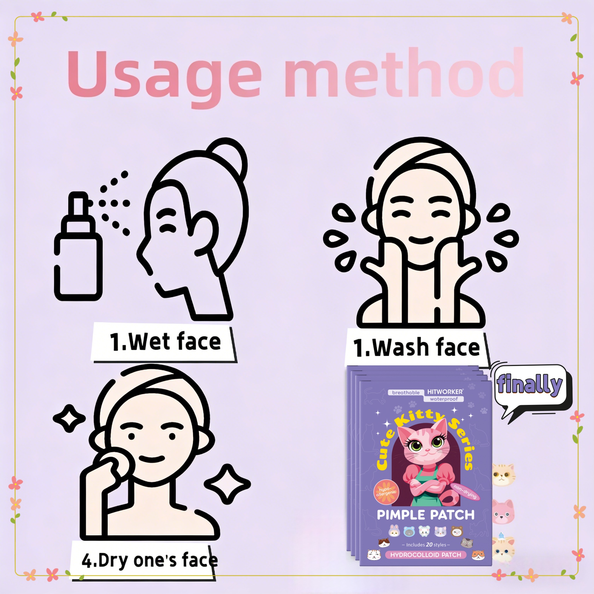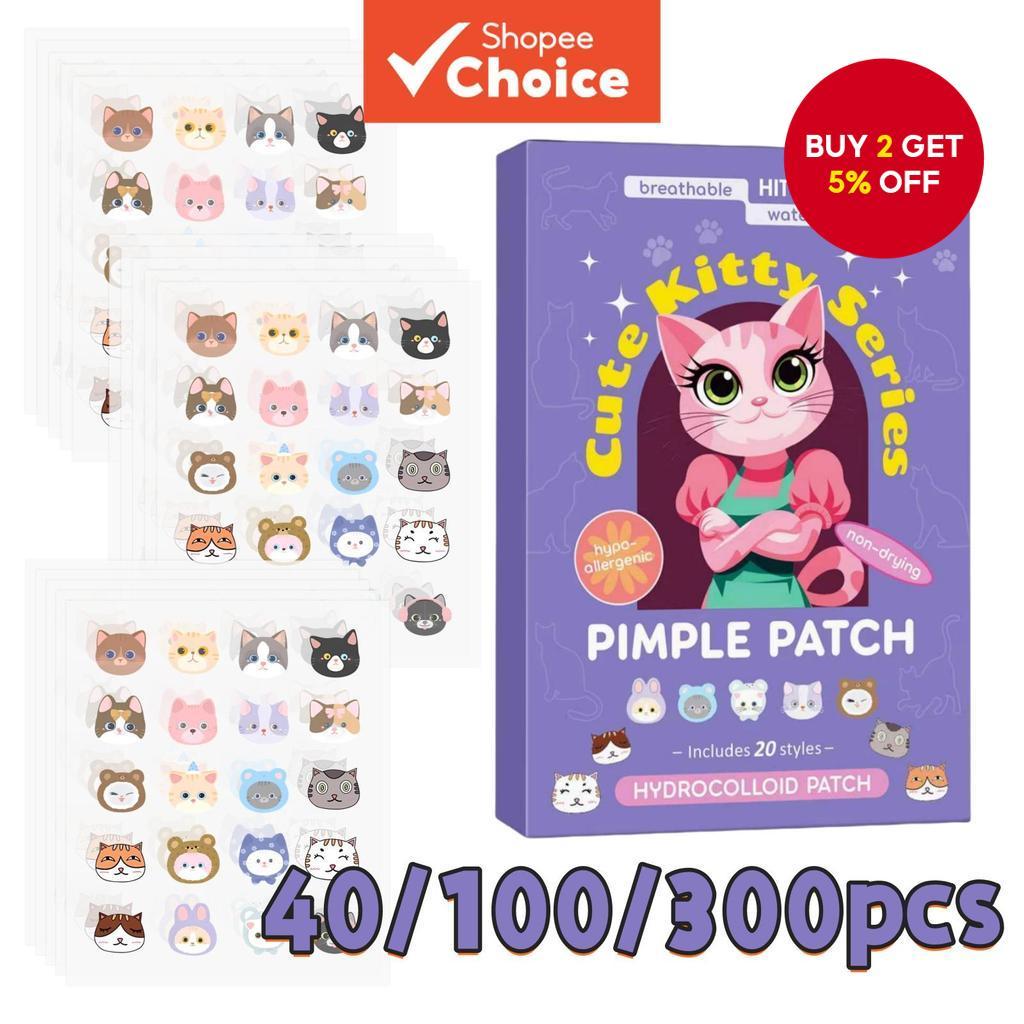 40/100/300pcs Cartoon Cat Acne Patches, Facial Concealer Stickers for Covering Acne Marks & Concealing Blemishes Invisibly