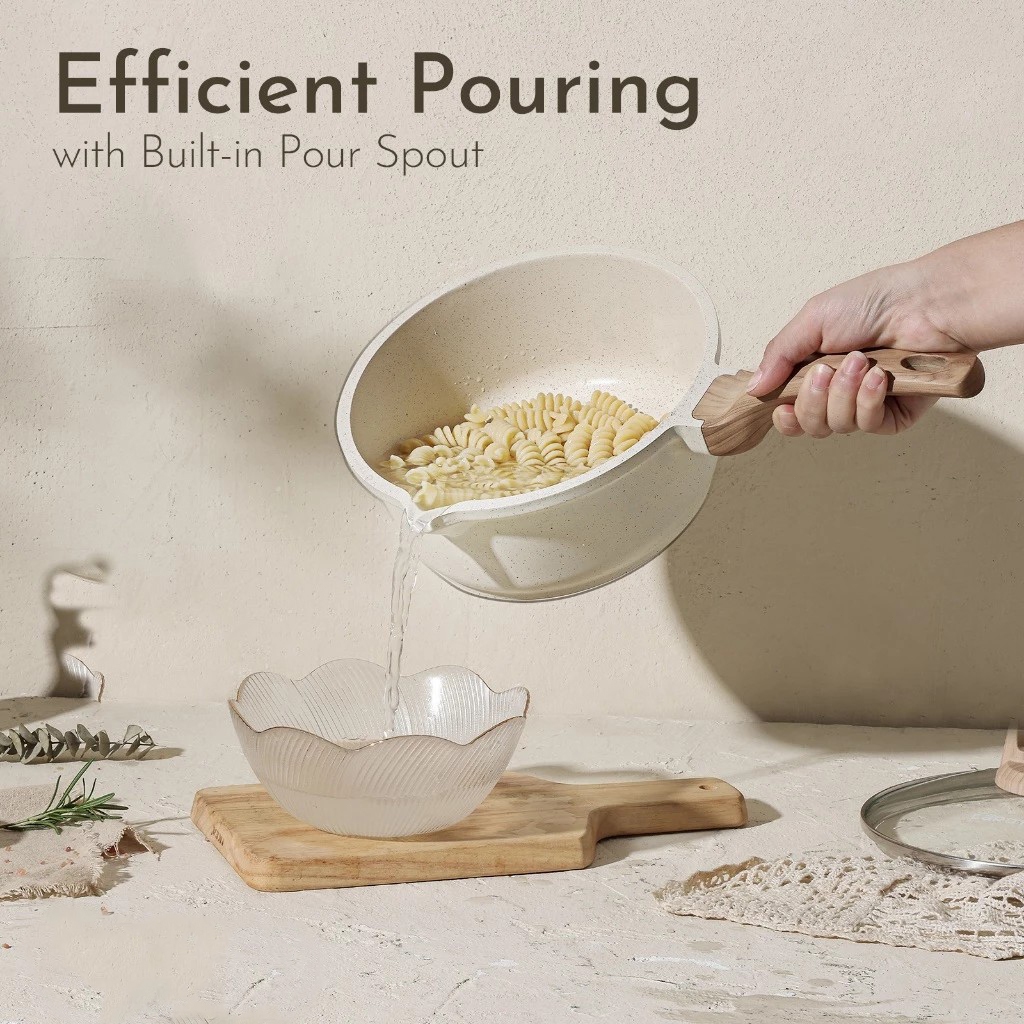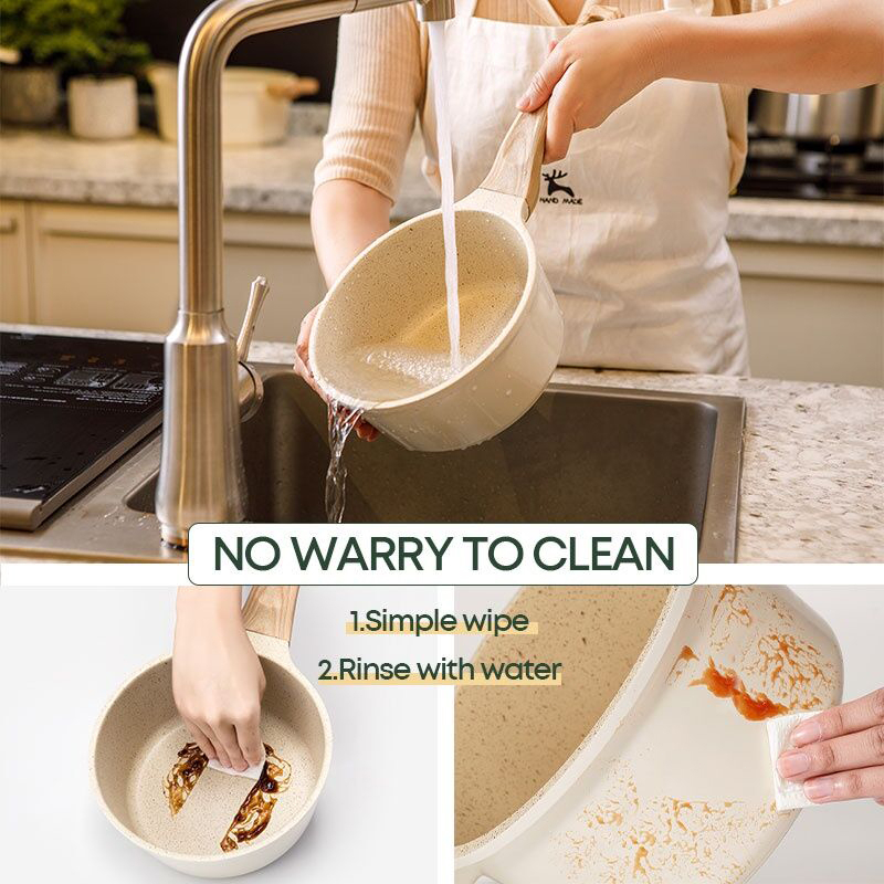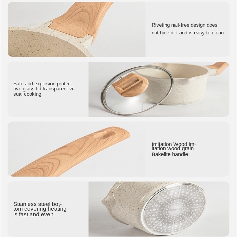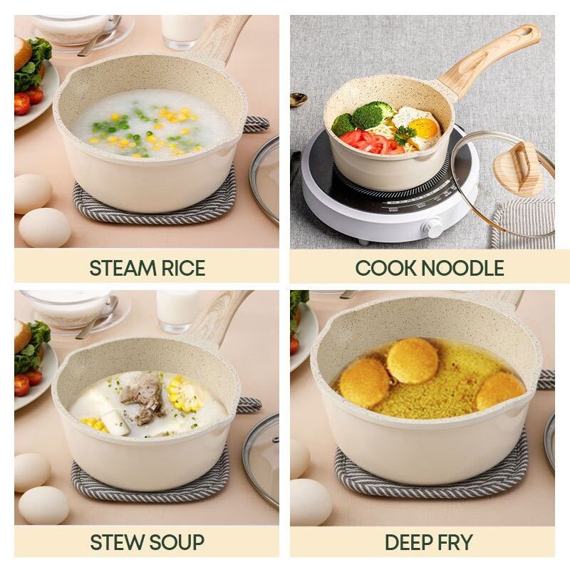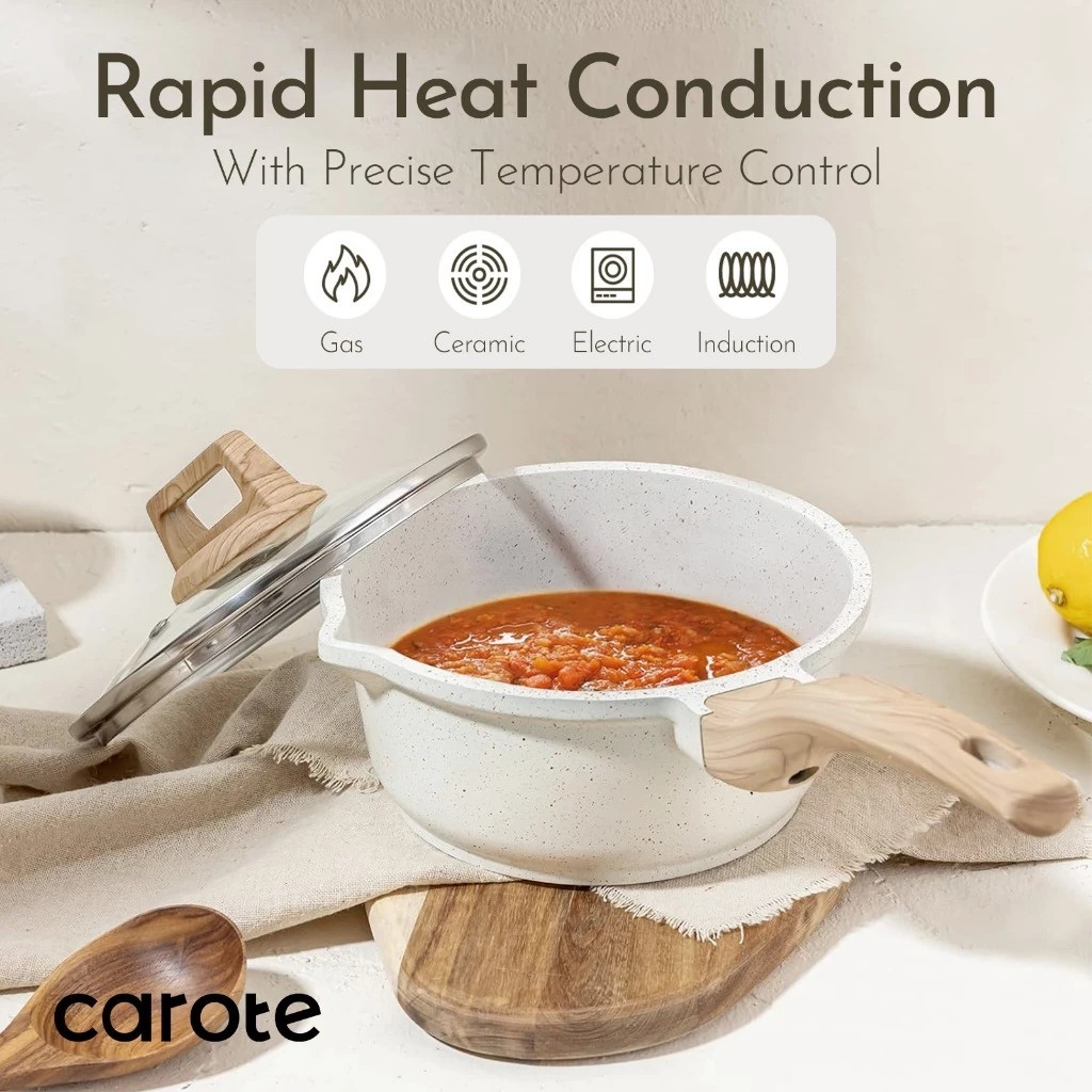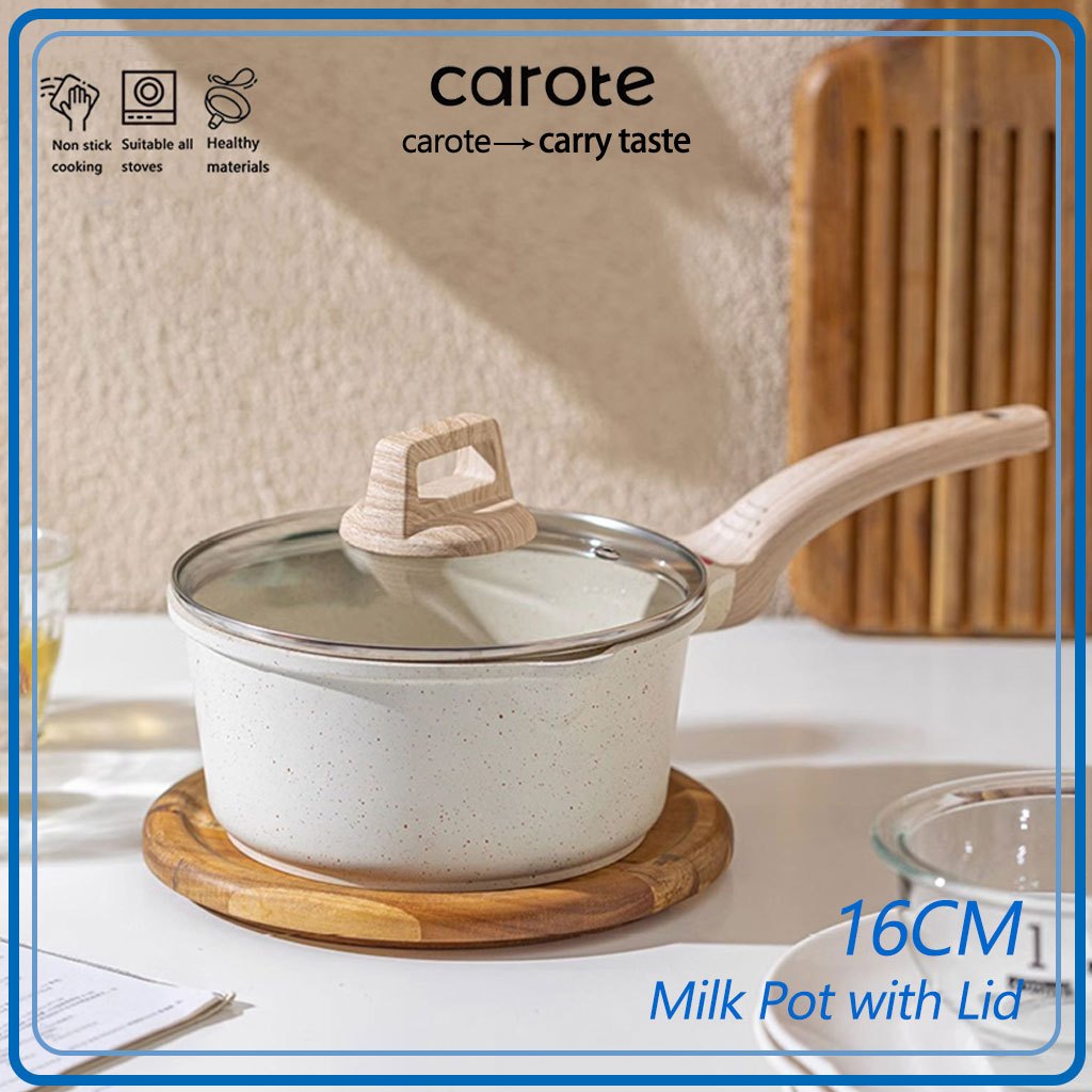 Carote Japanese Milk Pan With Lid & Wooden Handle Baby Food Friendly All Stove Compatible