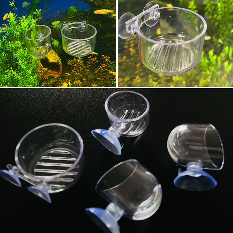 Aquarium Hanging Feeding Cups Fish Tank Decorations Mini Crystal Acrylic Pot Aquatic Plants Planting Cylinder Cup Accessories