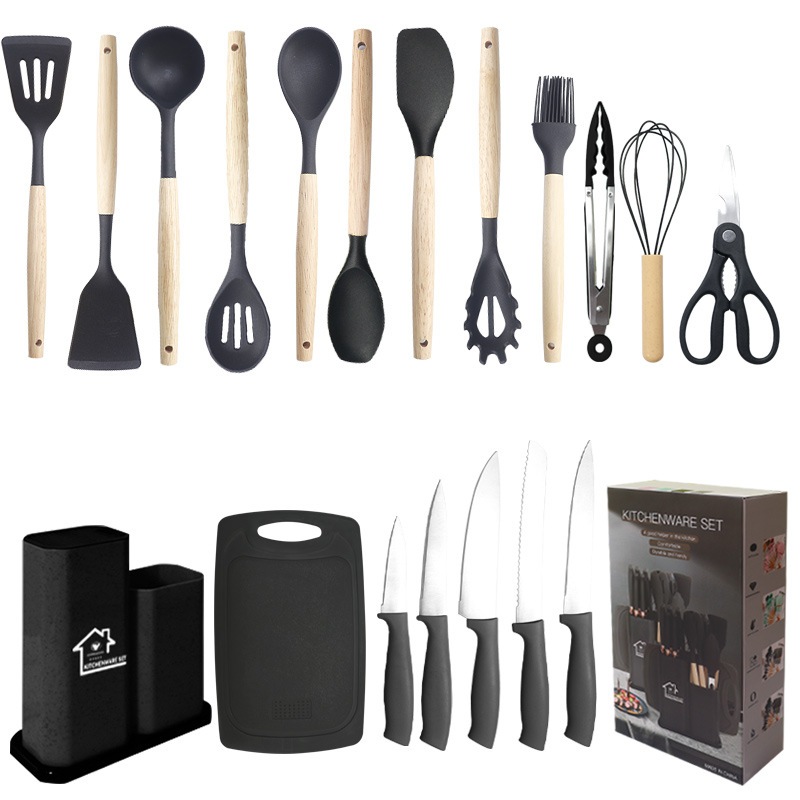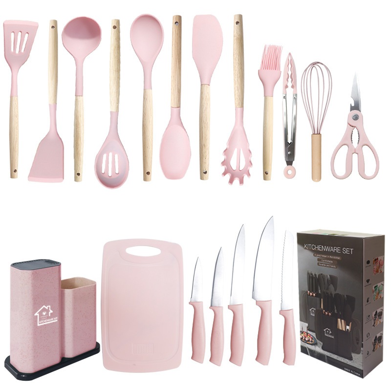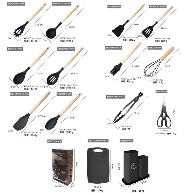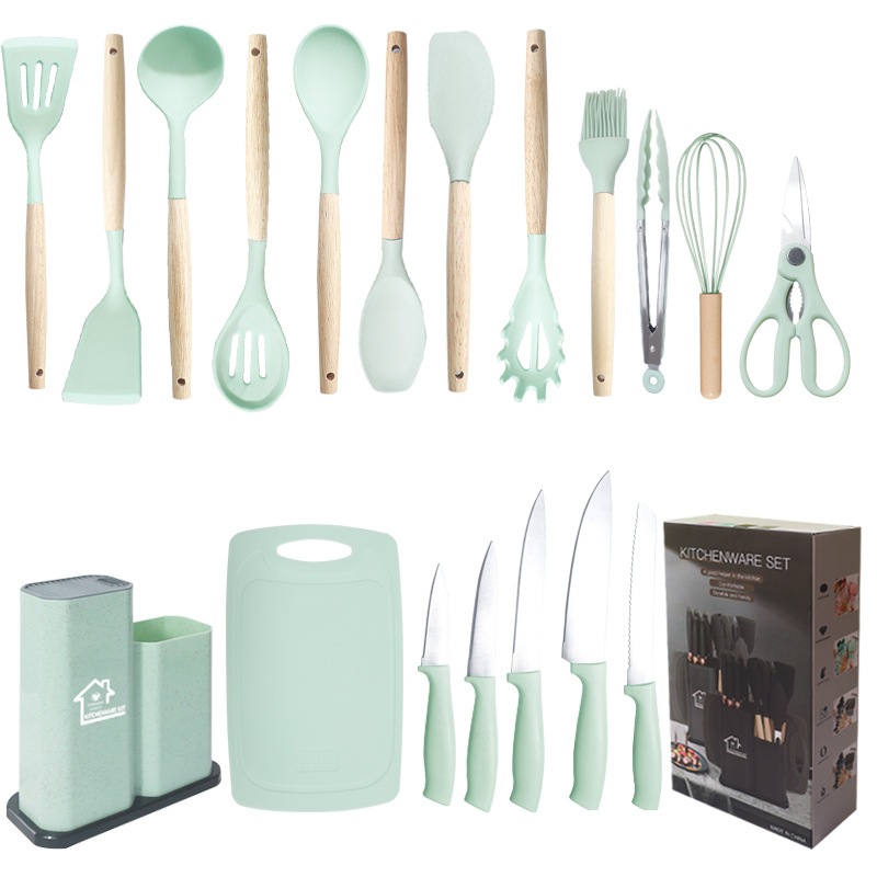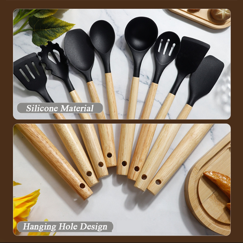 19PCS silicone kitchen utensils set Spatula For Non Stick Pan Shovel Wooden Handle Cooking Tools Set