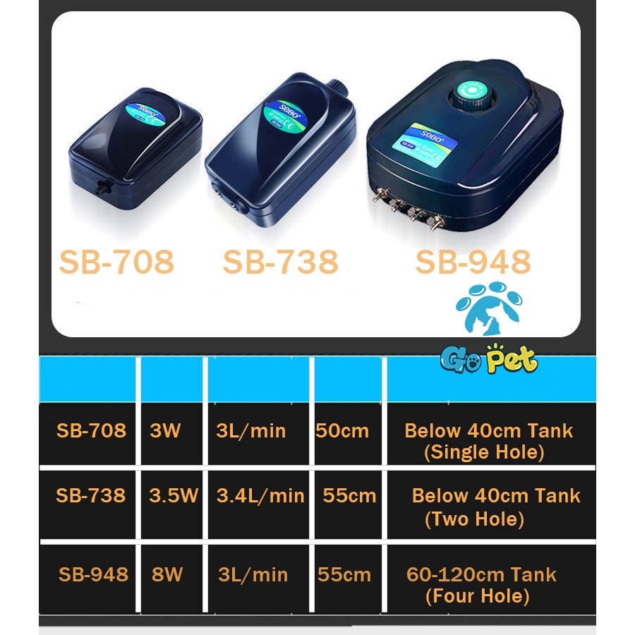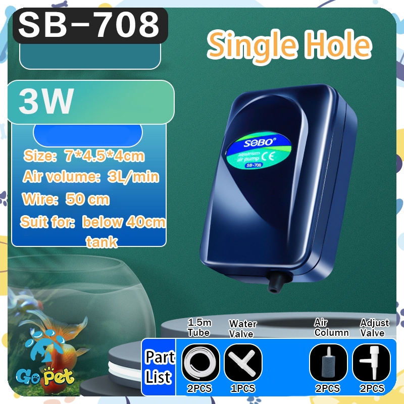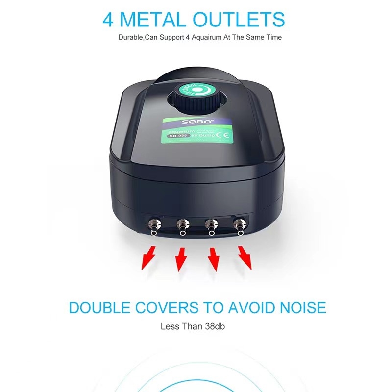 Aquarium Oxygen Pump Fish Tank Air Pump Adjustable AirFlow Silent Double Outlet With Bubble Stone