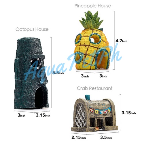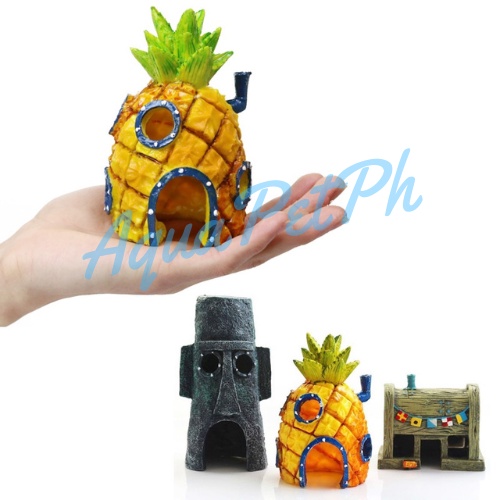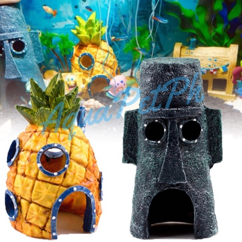 Aquarium Sponge Bob Pineapple House And Squidward Hideout Aquarium Decor Fish Shrimp Hide House