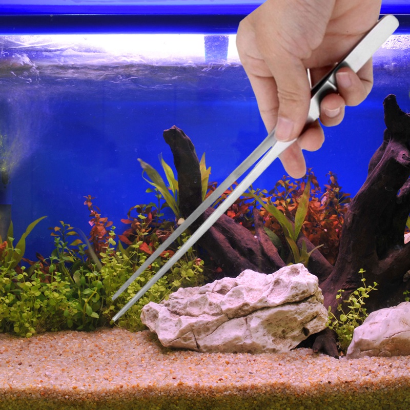 Aquarium Tweezers Extra Long 2 Pcs Stainless Steel Straight and Curved Tweezers for Fish Tank Plant Aquascape Tools, Feeding Tongs: