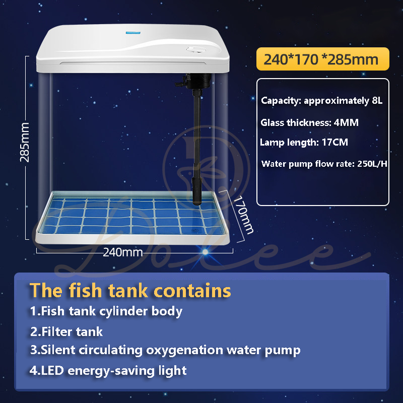 Aquarium kit Betta Fish Tank self Cleaning , with Filter LED Light, Water Pump