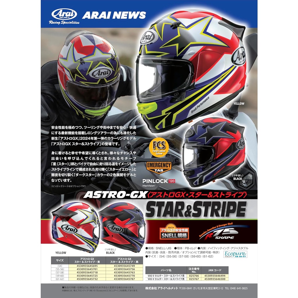 Arai Motorcycle Helmet Full Face ASTRO GX STAR&STRIPE Yellow [Direct From Japan]