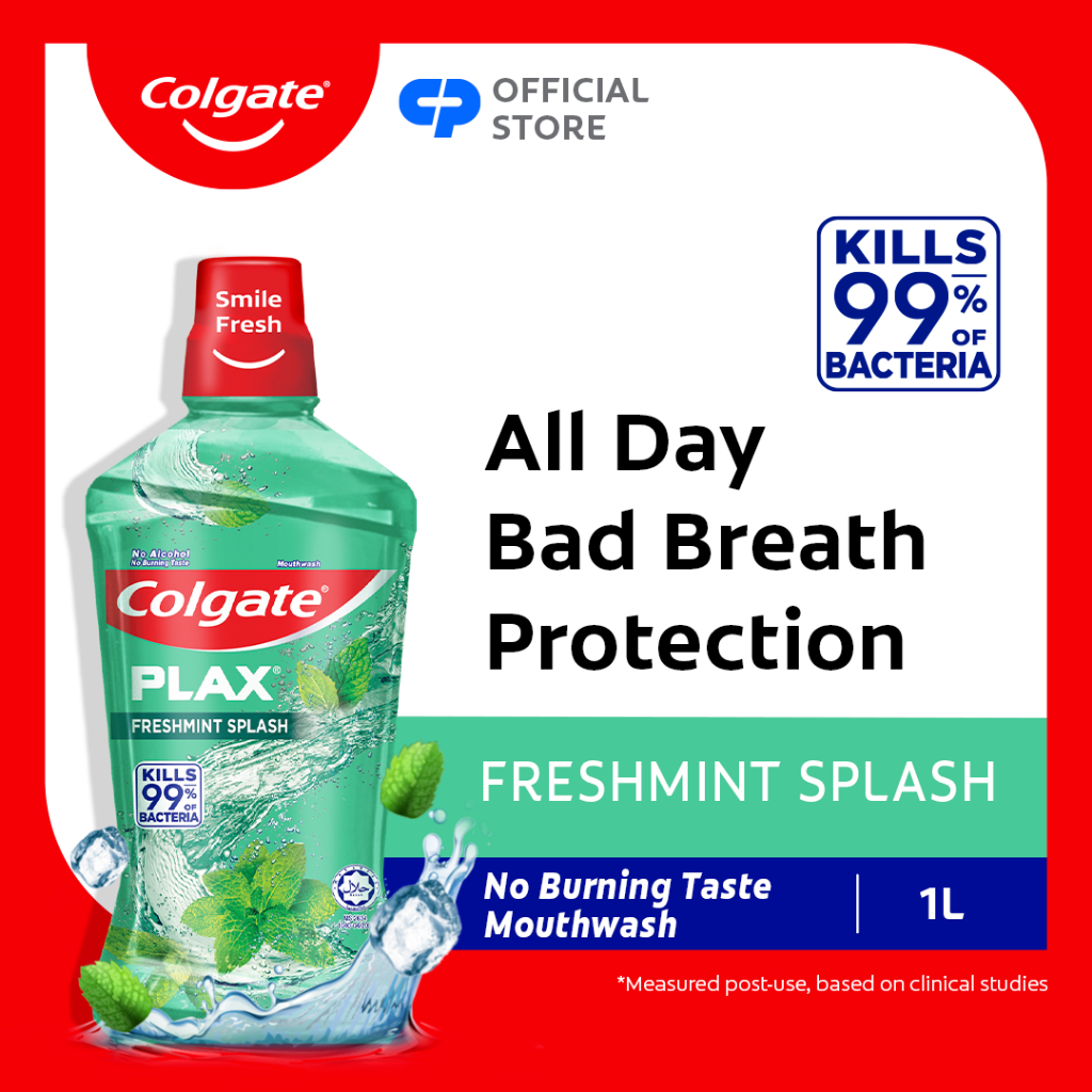 Colgate Plax Antibacterial Mouthwash Freshmint, No-Alcohol, Long-Lasting Freshness 1L