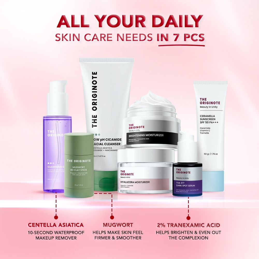 The Originote 7in1 Bundle Set - Facial Cleanser Moisturizer Claystick Serum Sunscreen Cleansing Oil