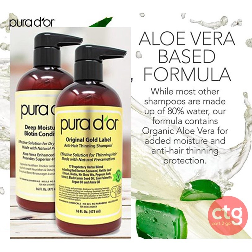 Pura[i$D'or h#Anti-Hair Thinning Shampoo and Conditioner 473ml Pura dor Glutenfree)K}Hypoallergenic
