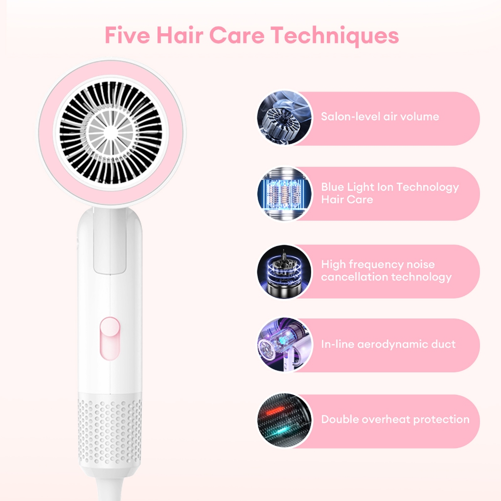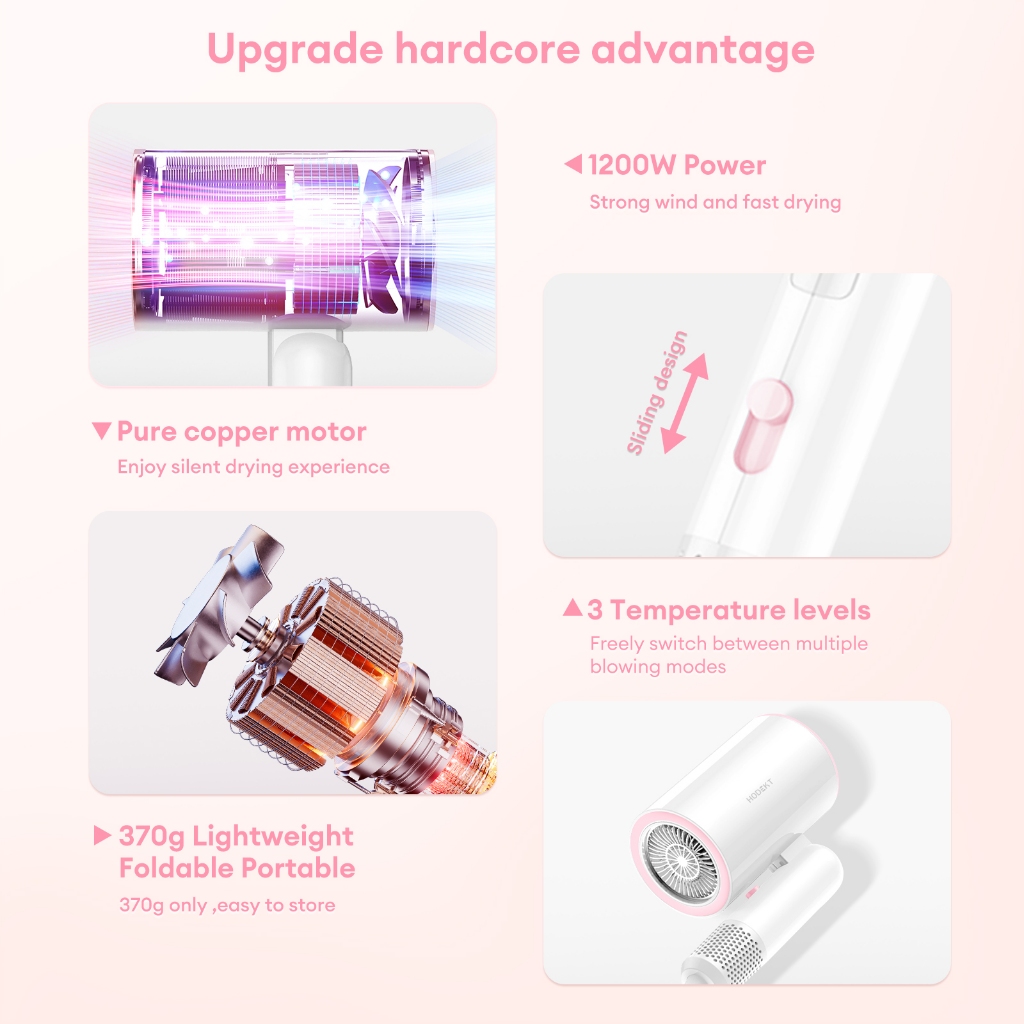 HODEKT Foldable Hair Dryer 1200W Portable Blower Professional Beauty Hair Care