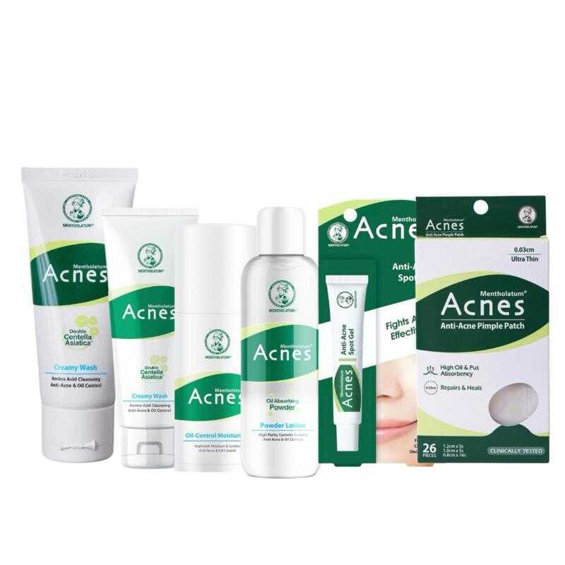 Acnes Anti-Acne Pimple Skincare Collection (Creamy Wash,Oil Control Moisturizer,Powder Lotion,Spot G