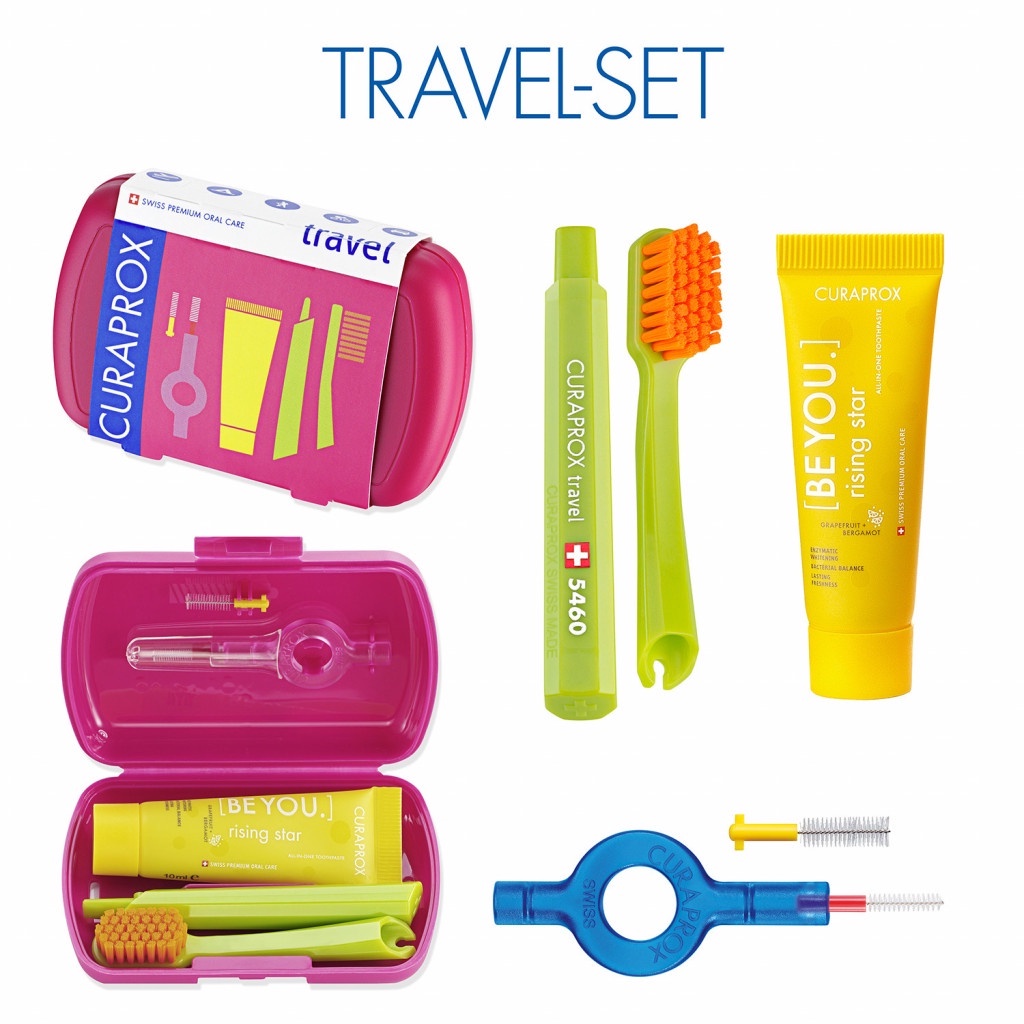 Curaprox Travel Set Compact CS 5460 Toothbrush BE YOU Toothpaste and Interdental Brush Dental Kit