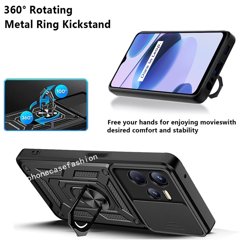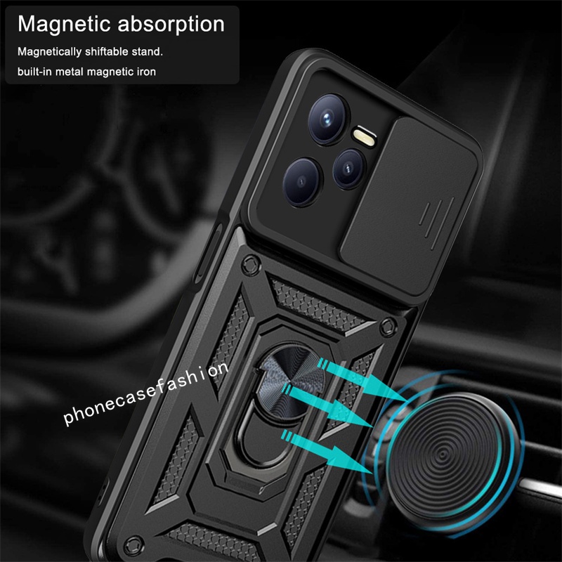 Armor Shockproof Phone Case For Realme C35 Real me Car Holder Ring Stand Casing Slide Camera Lens Protect Back Cover