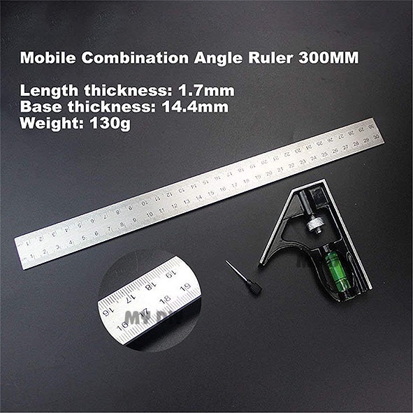 Arrow Stainless Steel Combination Square Ruler Level Gauge Angle Metric Ruler Adjustable Angle Ruler