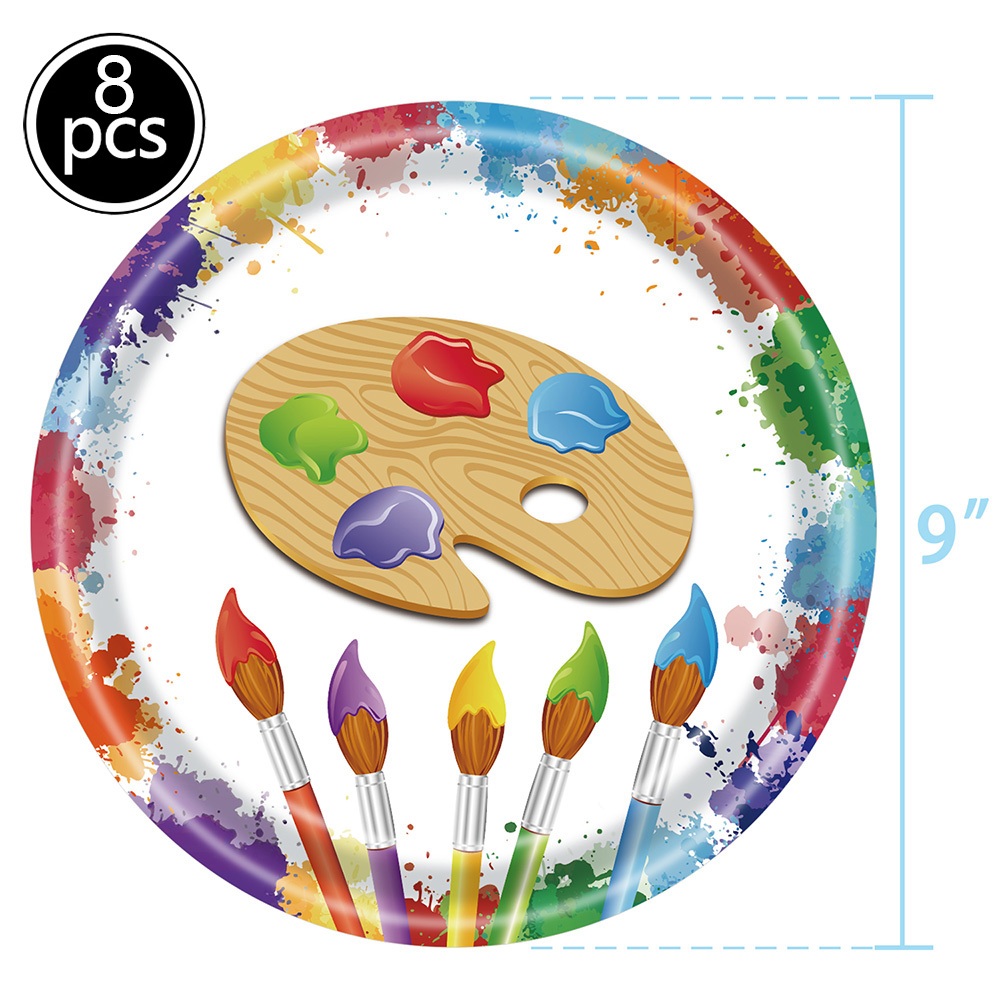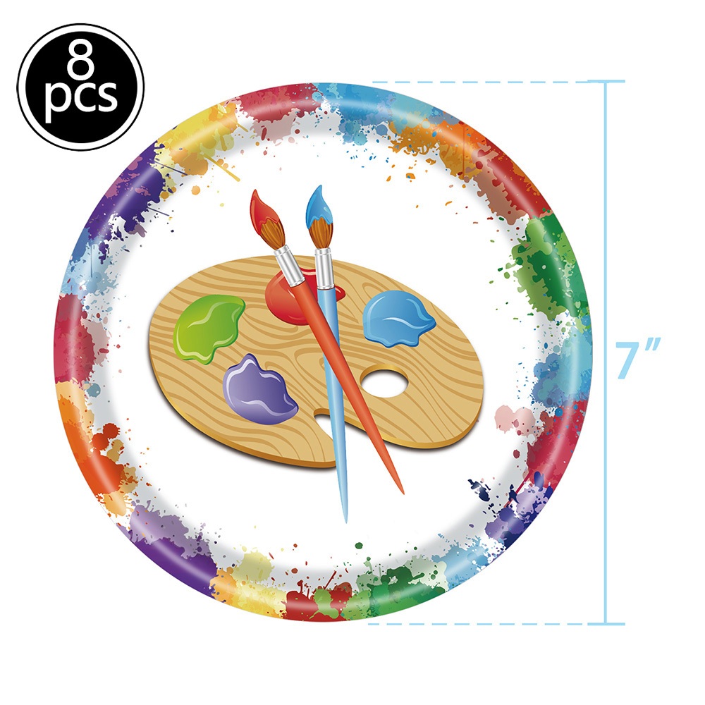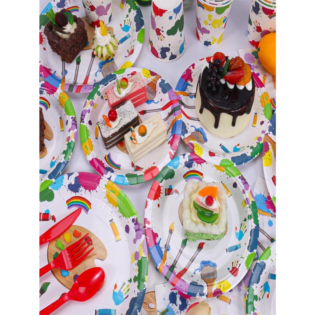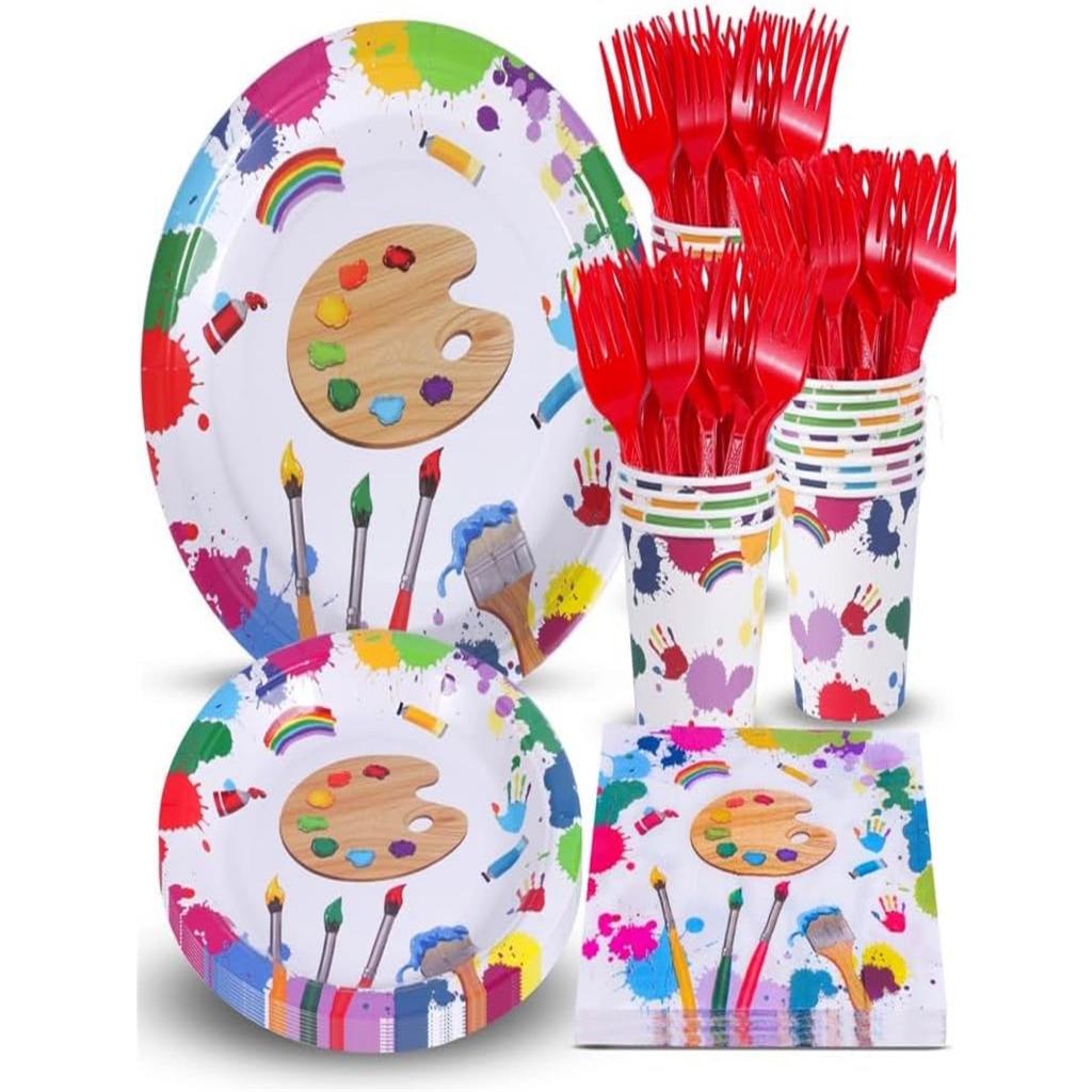 Art birthday party supplies, art plates and napkins, art paper plates, cups, napkins and cutlery, suitable for painting birthday, baby shower art theme party