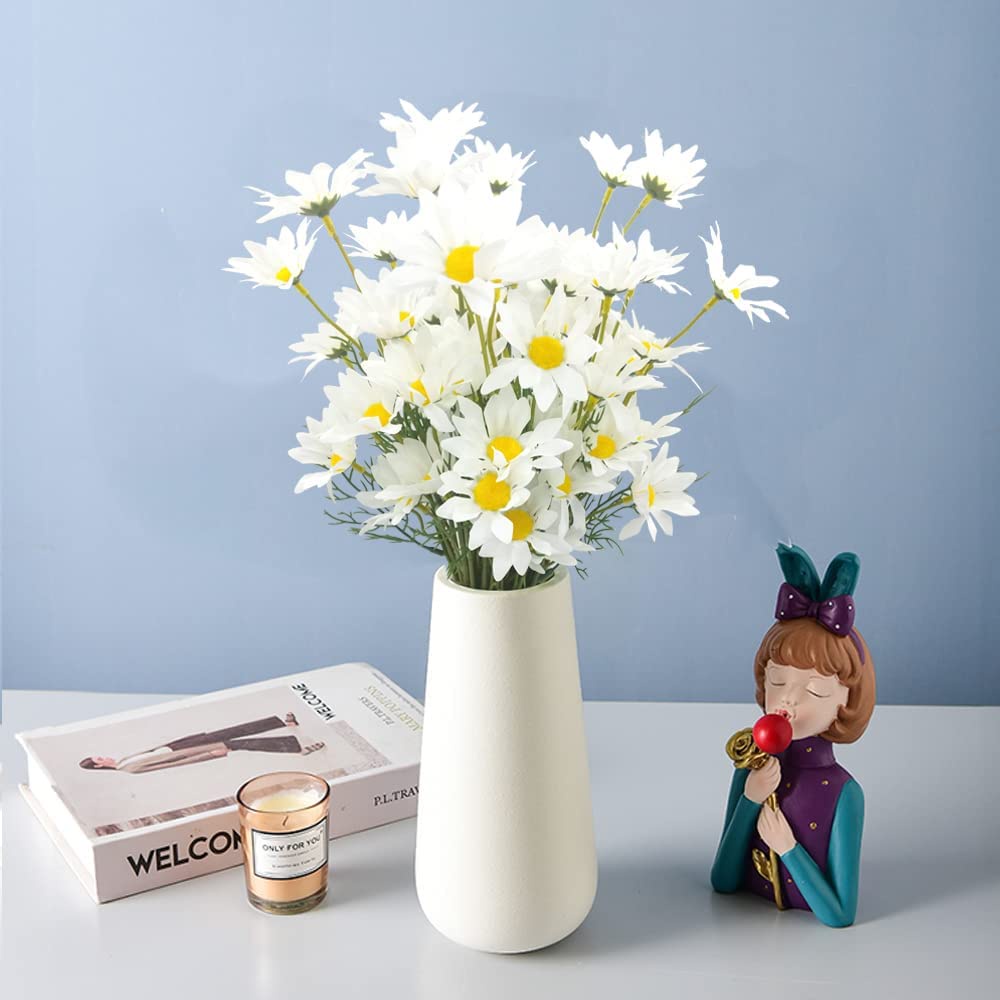 Artificial Daisy Flowers,6 Pcs Silk Daisy, Artificial Gerber Daisy for Home Decoration, Fake Wildflowers Spring Flowers for Wedding Decoration(Milk White)