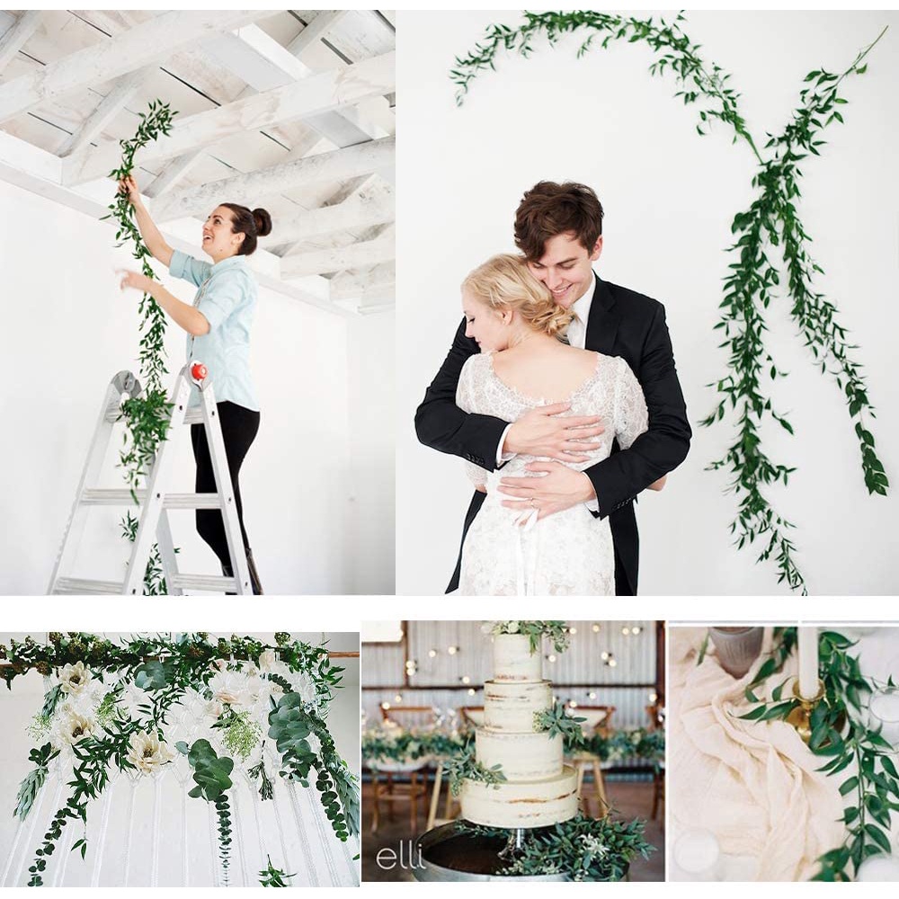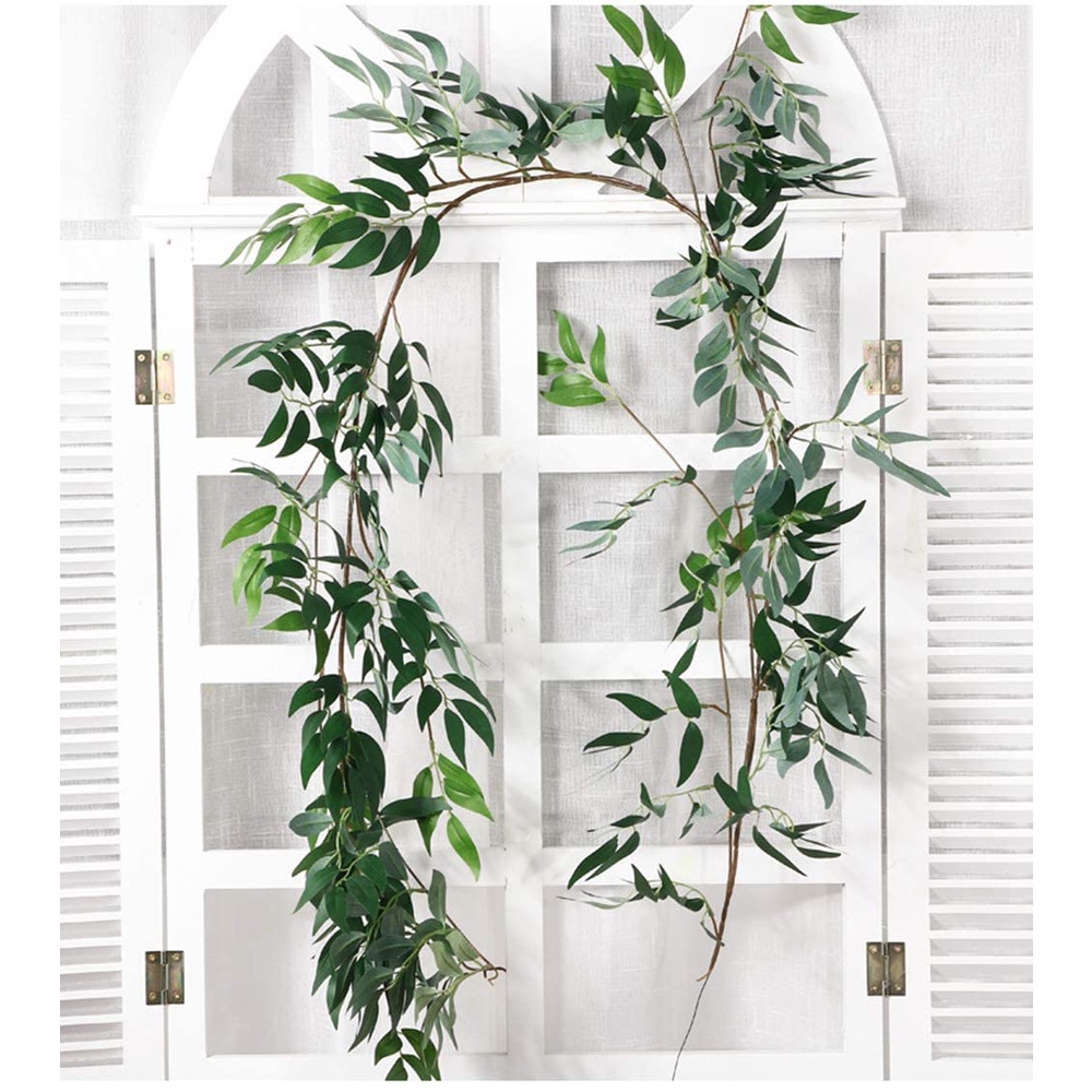 Artificial Hanging Leaves Vines, Artiflr 5.6 Ft Fake Willow Leaves Twigs Silk Plant Leaves Garland String in Green for Indoor/Outdoor Wedding Decor Party Supplies Greenery Crowns