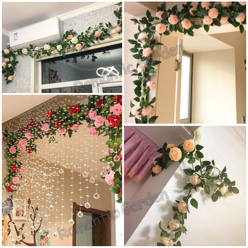 Artificial Silk Rose Flower Vine With Green Leaves Home Wedding Party Decor Fake Flower Fake Fose