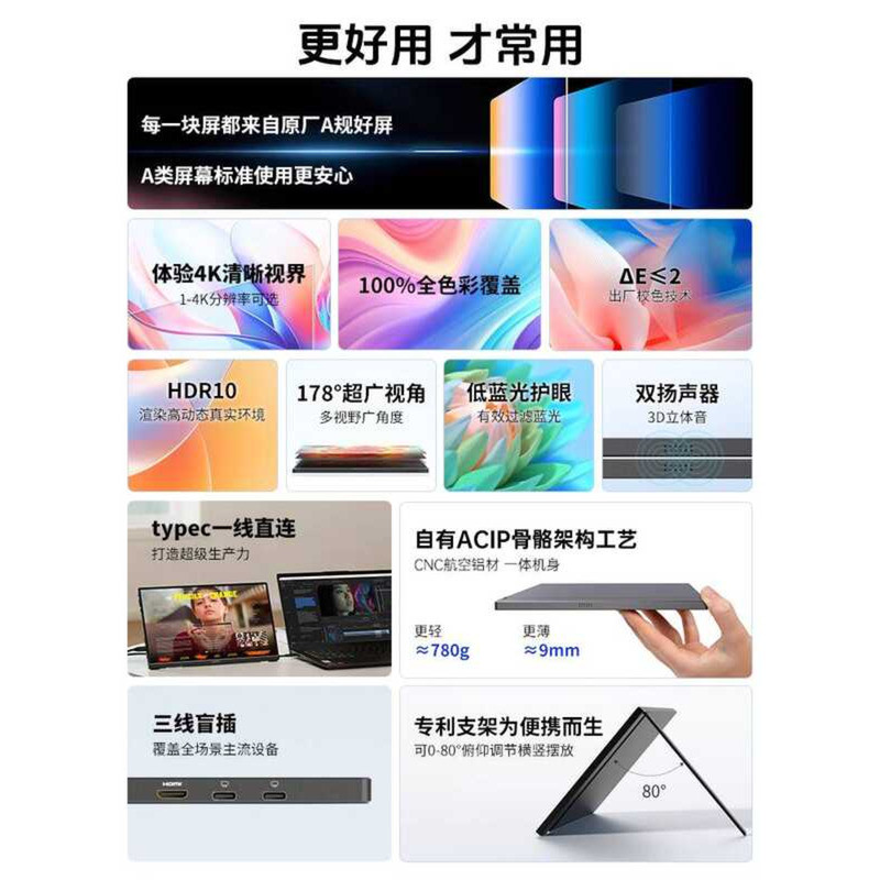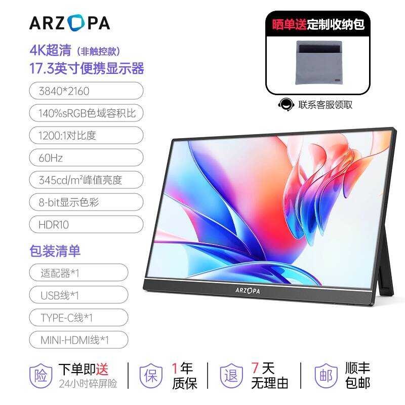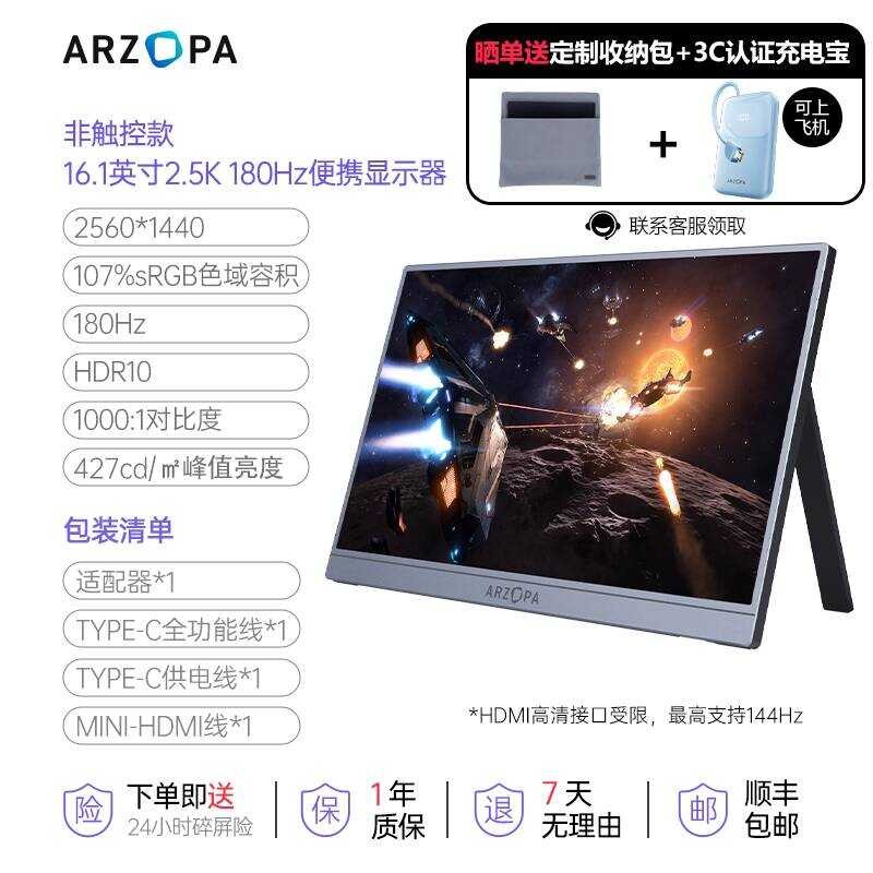 Arzopa Portable Monitor 4K 144Hz Secondary Screen Laptop Expansion Screen with External Monitor