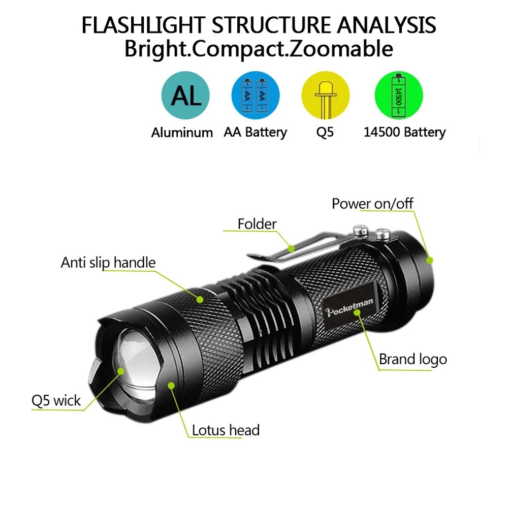 Asafee 5 Colors LED Mini Tactical Flashlight White/RED/BLUE/GREEN/UV Light ZOOM Torch Rechargerable Waterproof Lamp Lanterns