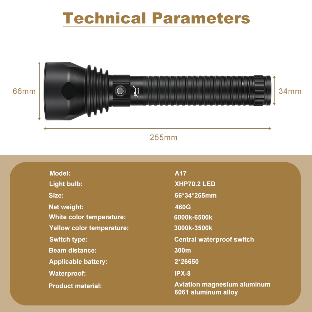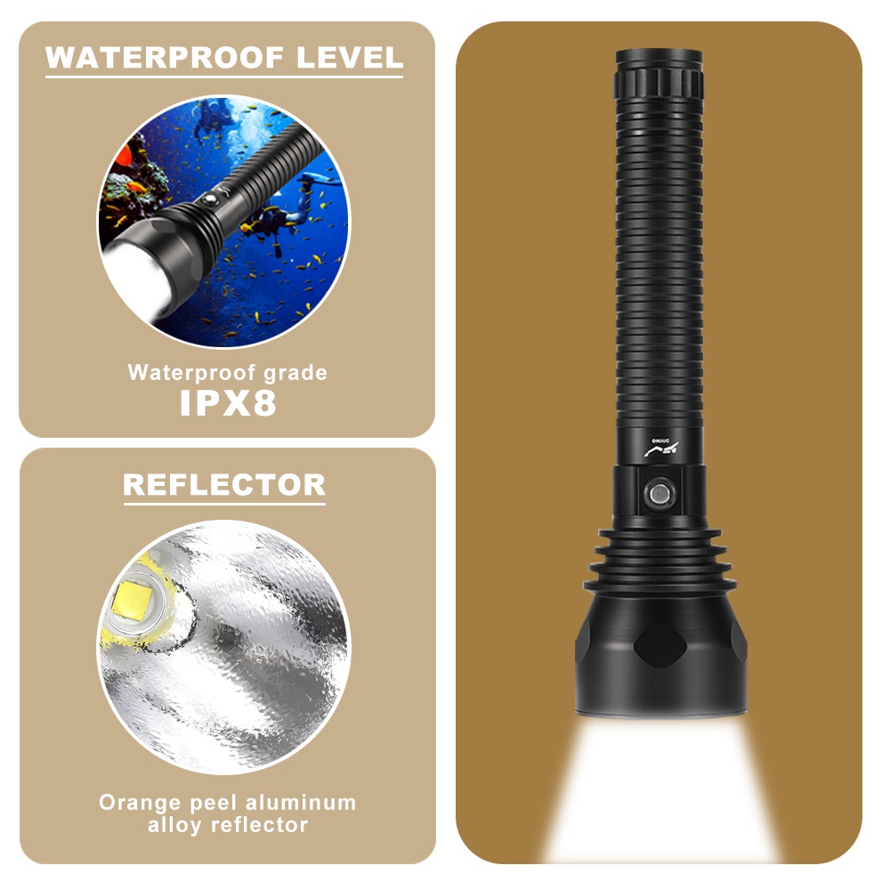 Asafee A17 Powerful Diving Flashlight XHP70.2 LED Waterproof Rechargeable Flashlight Scuba Diving 4000LM Lantern Professional diving light camping