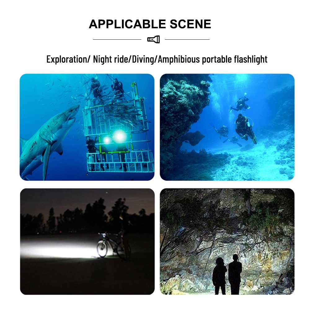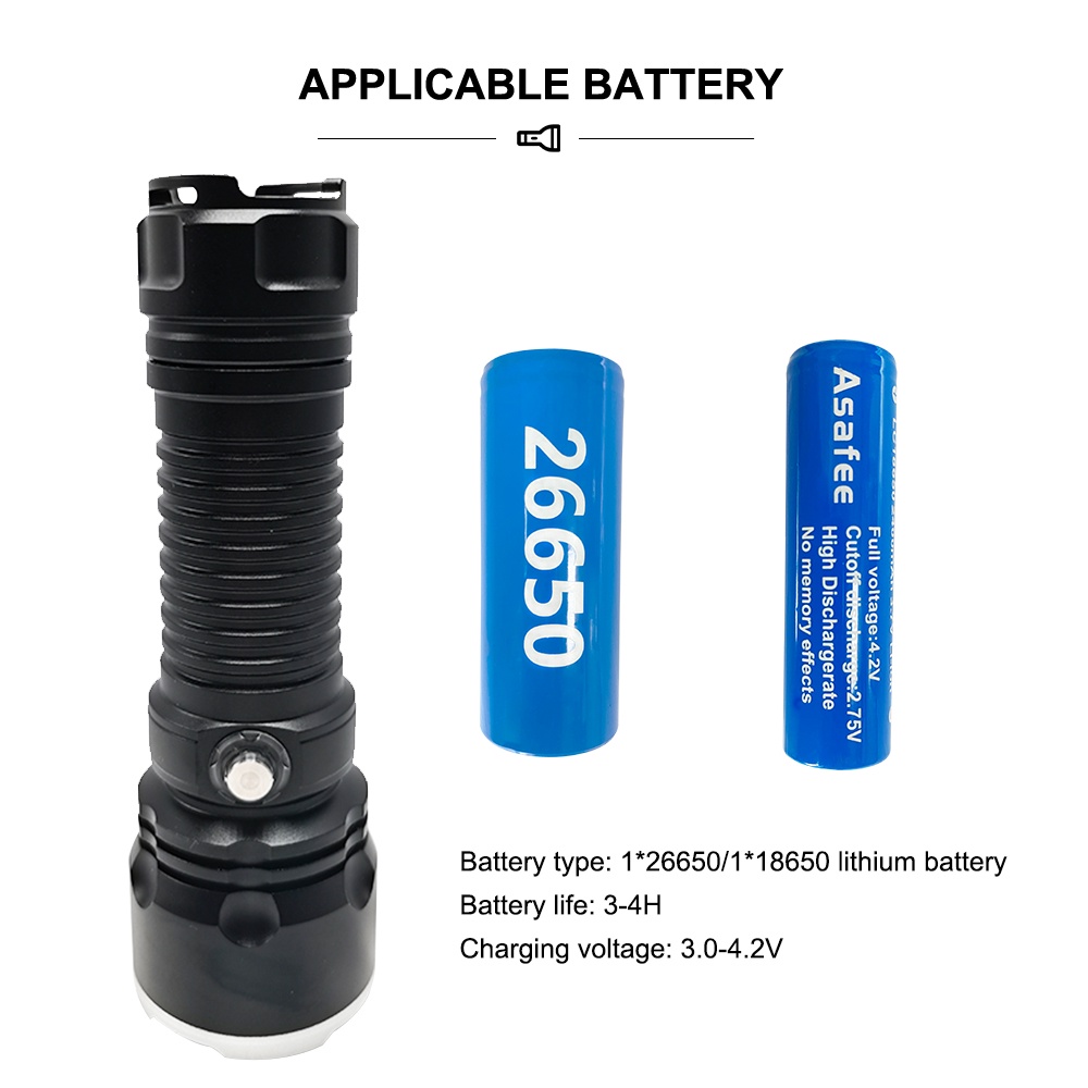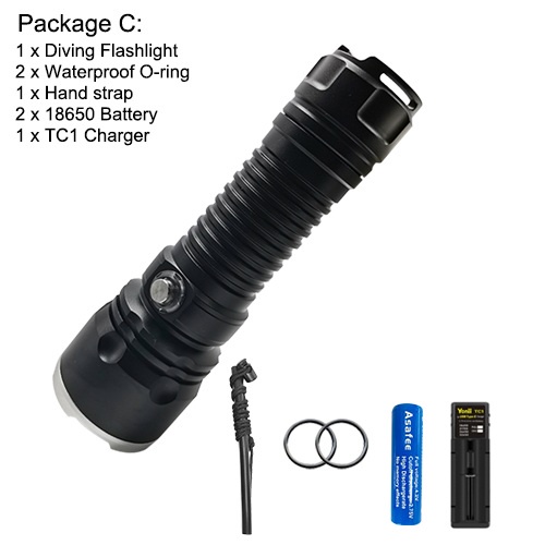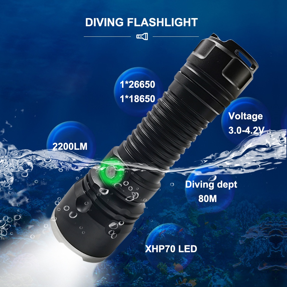 Asafee A18S Portable LED Diving Flashlight 2200LM P70 Flashlight 200M Range Rechargeable Waterproof 80M Depth Dive Torch