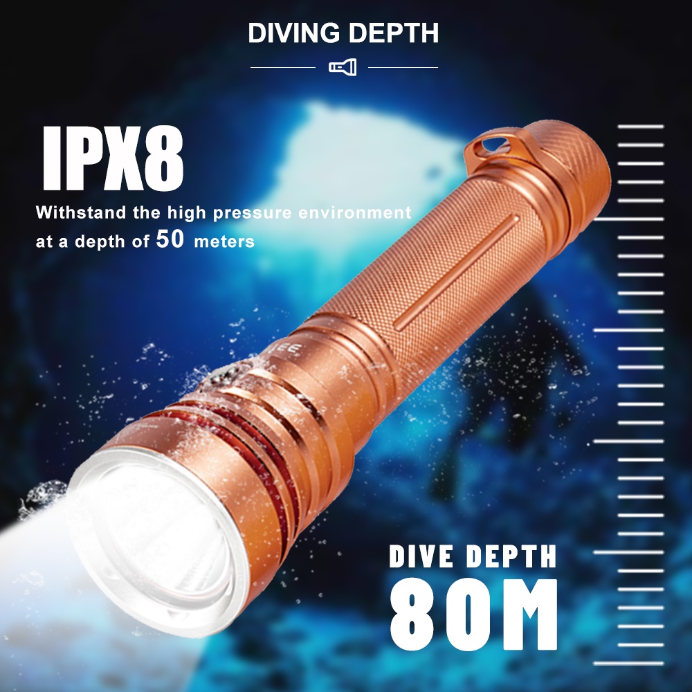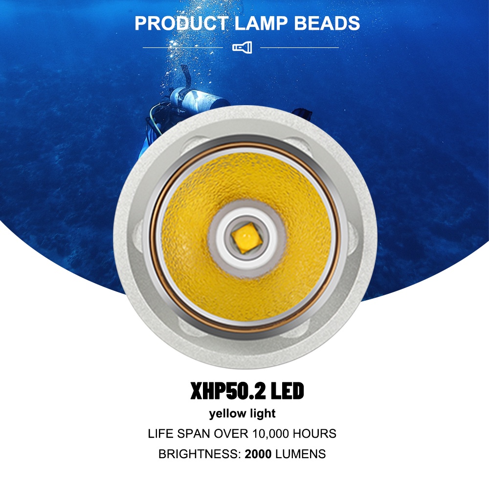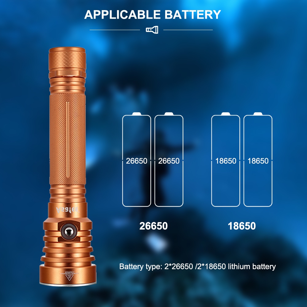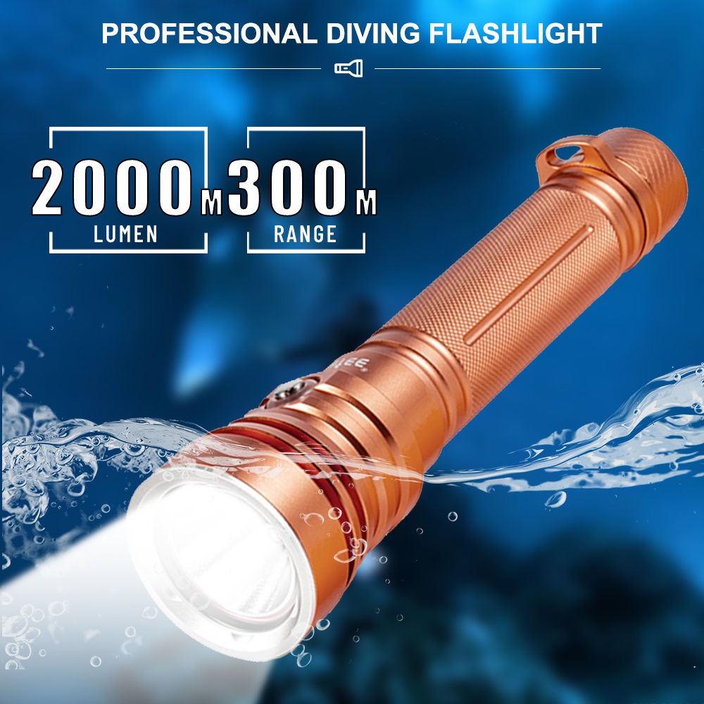 Asafee A20 Powerful 2000LM LED Diving Flashlight XHP50.2 Flashlight USB Rechargeable Waterproof Depth 80M Dive Torch