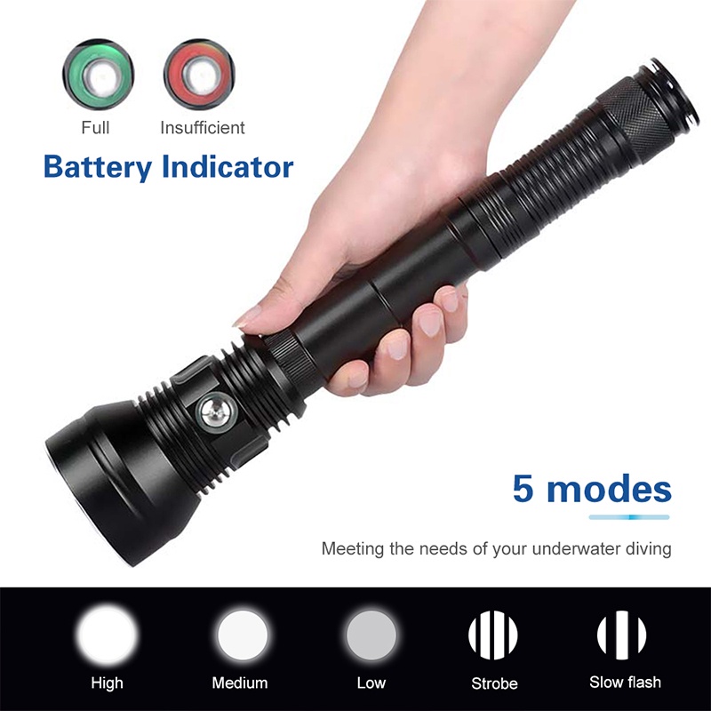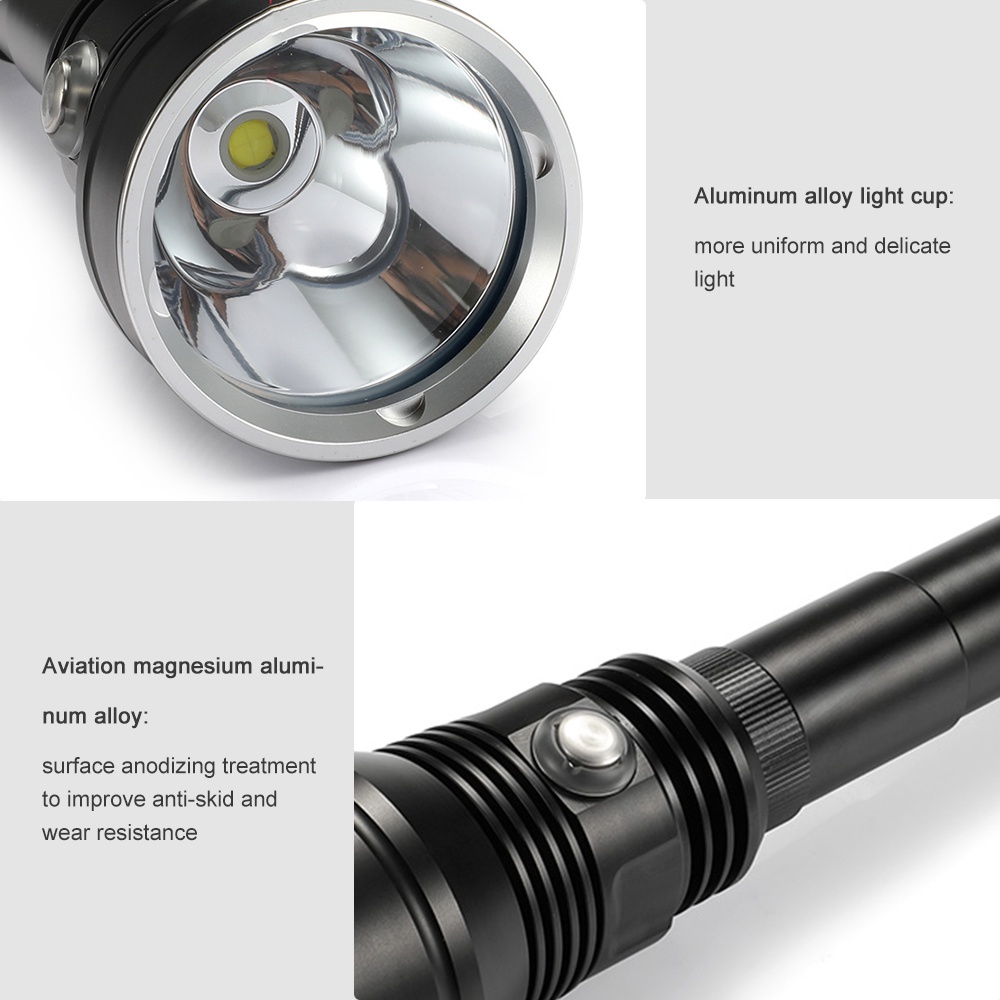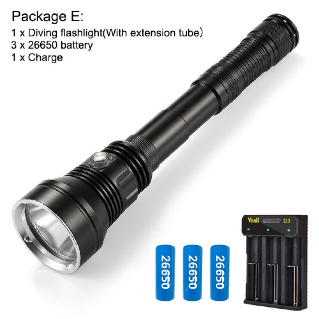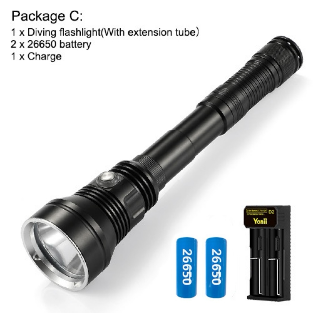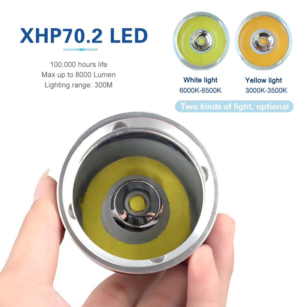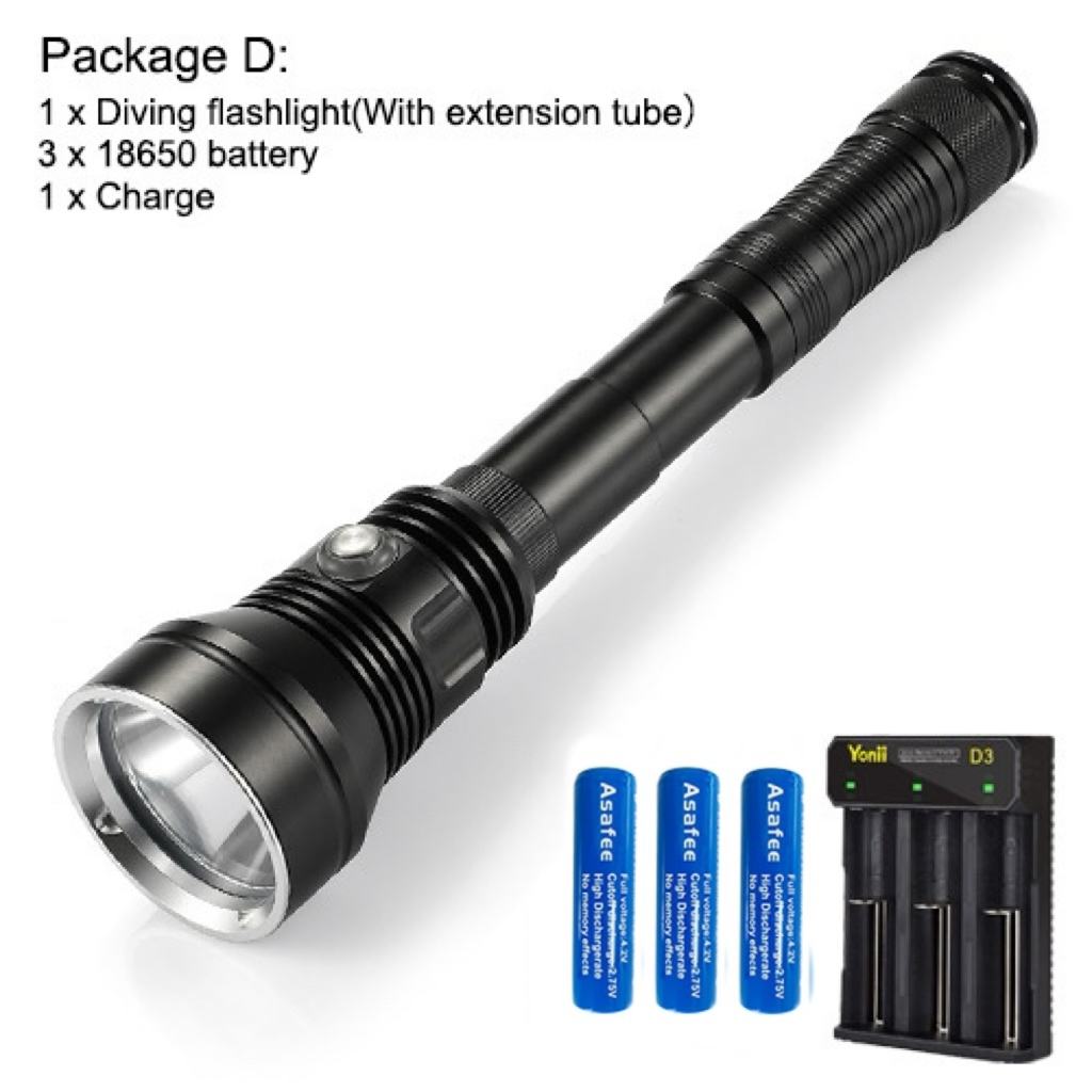 Asafee A33 6000LM Professional LED Diving Flashlight XHP70.2 White/Yellow Light Scuba Torch Rechargeable Waterproof 80M With Extension Tube Lantern