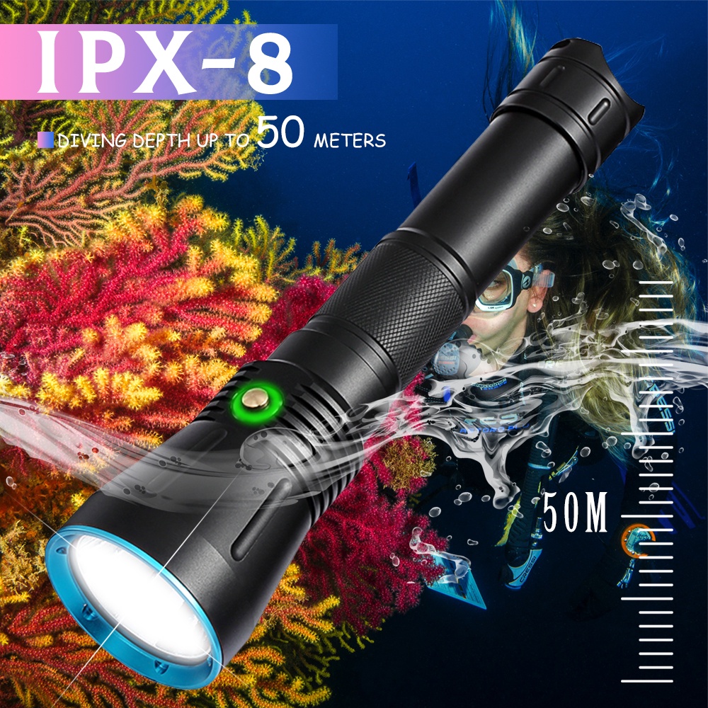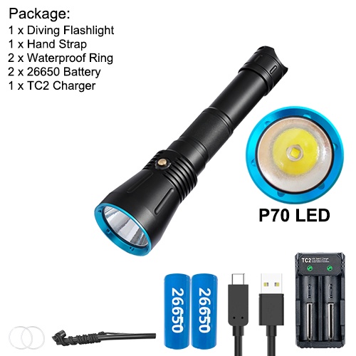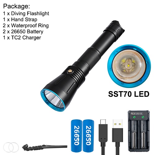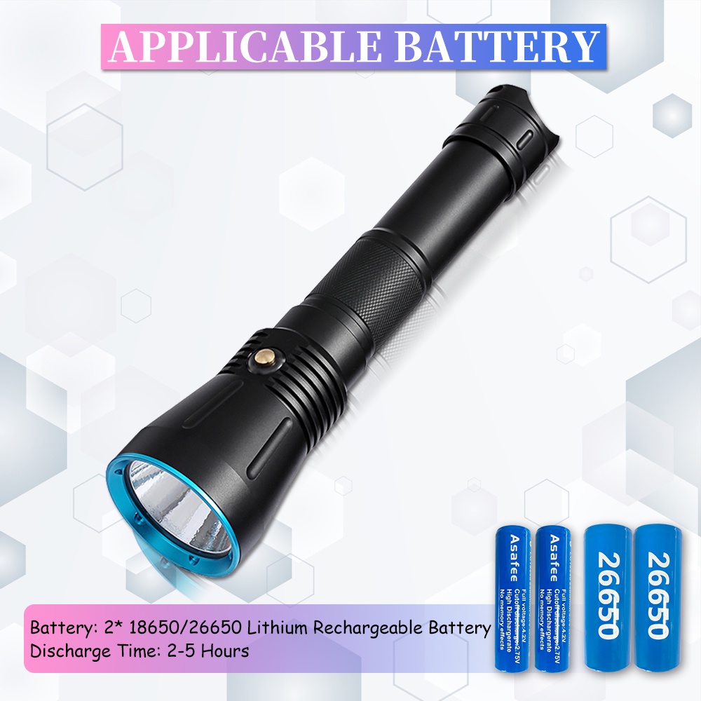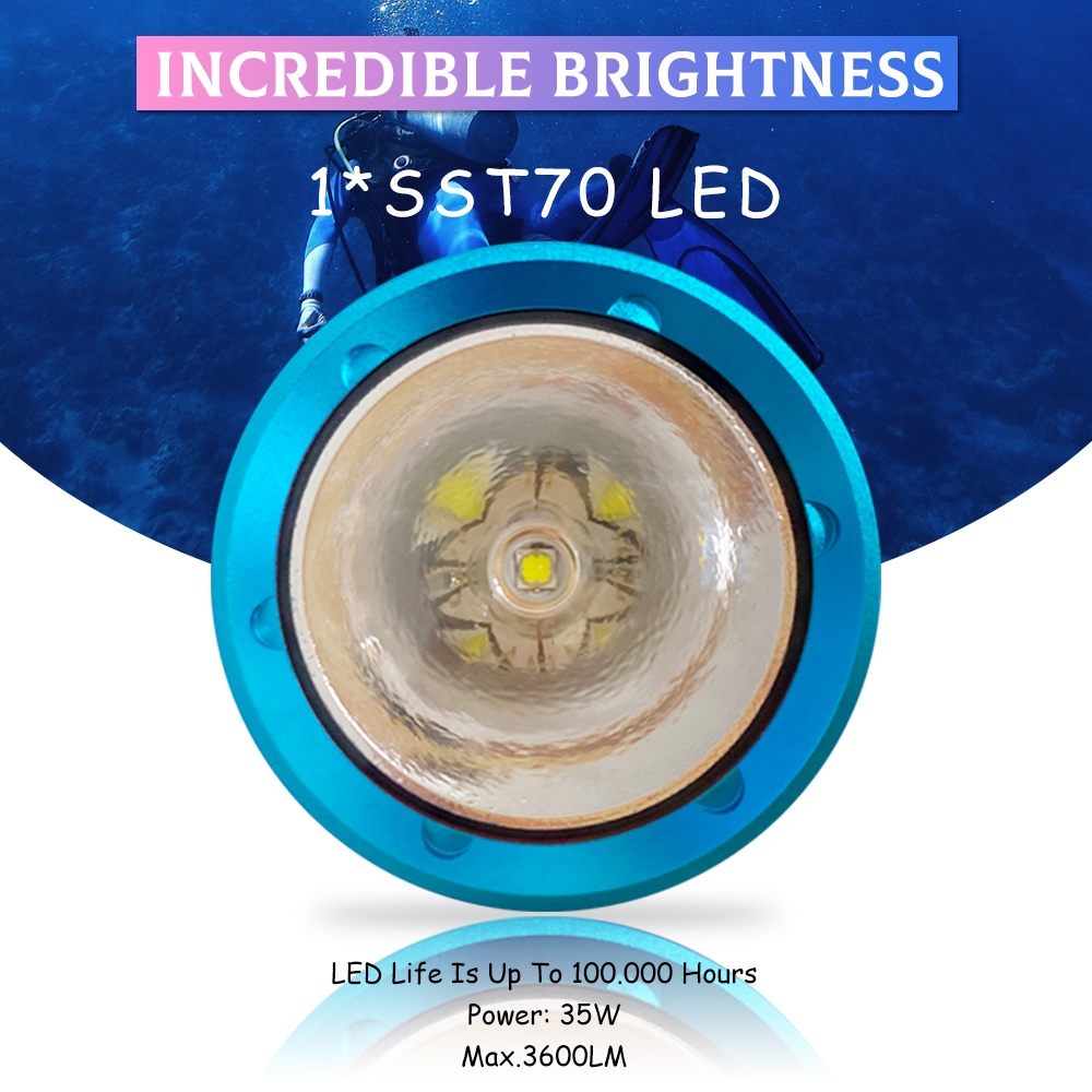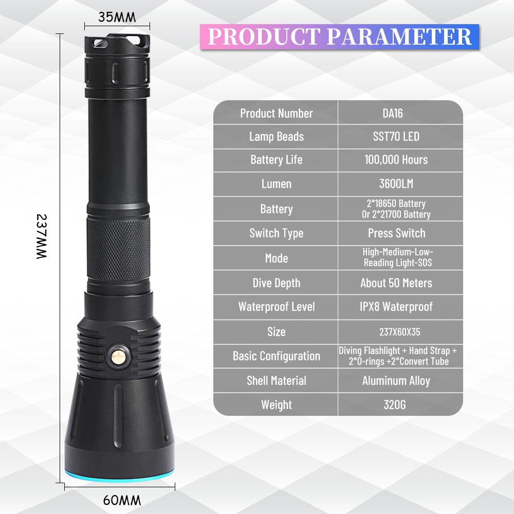 Asafee DA16 Powerful Diving Flashlight 3600LM SST70 Light Scuba Lantern Rechargeable 50M Waterproof Dive Torch
