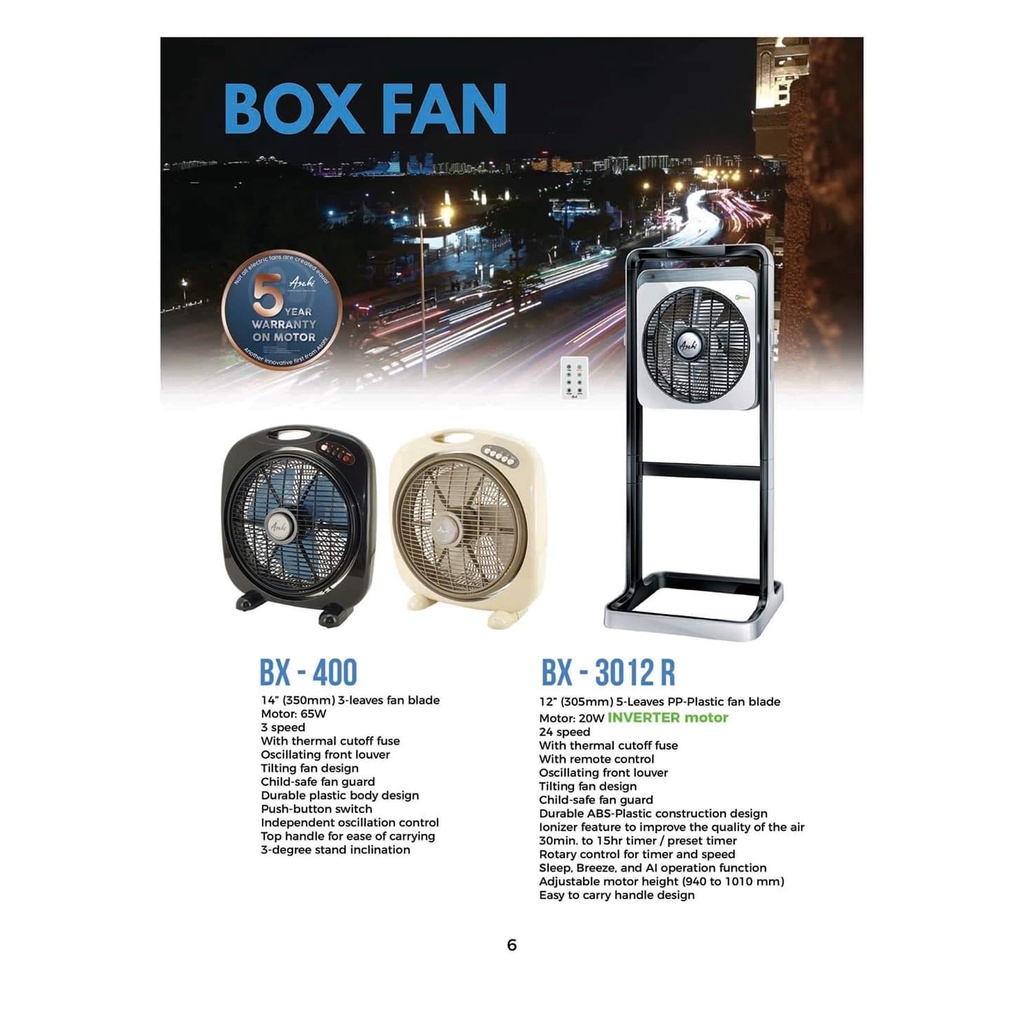 Asahi BX-400 14" Box Fan (Mocha)