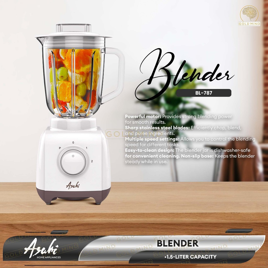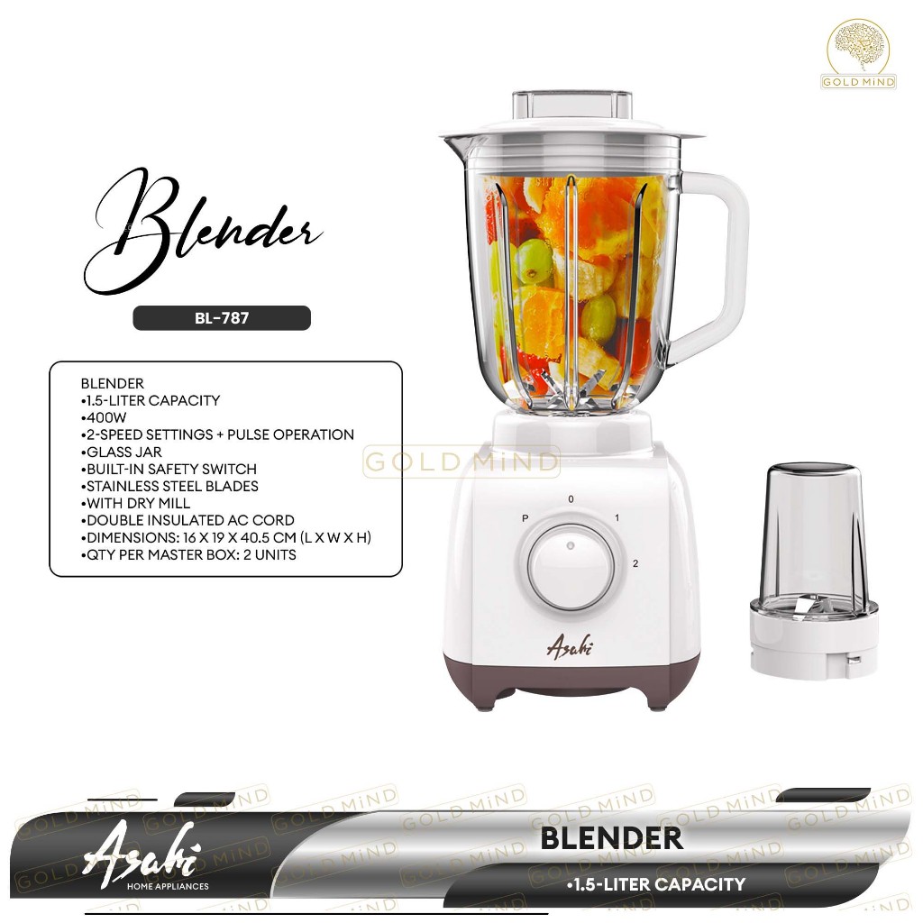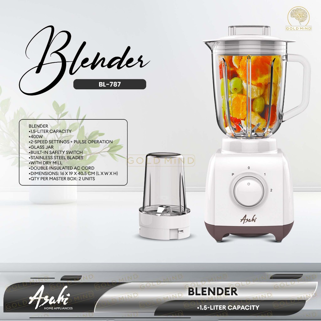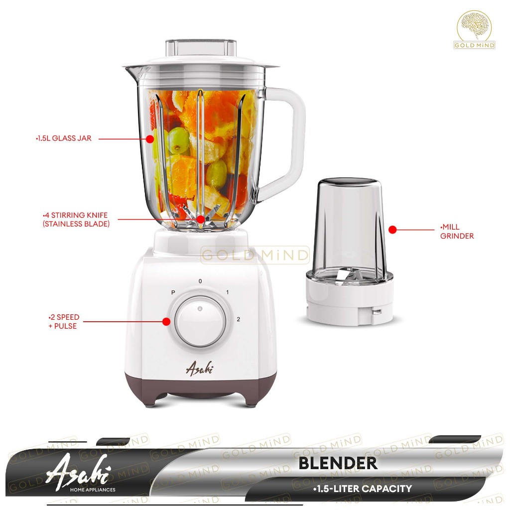 Asahi Electric Blender /Mill Grinder 2 Speed + Pulse 1.5L Glass Jar & Mill Grinder