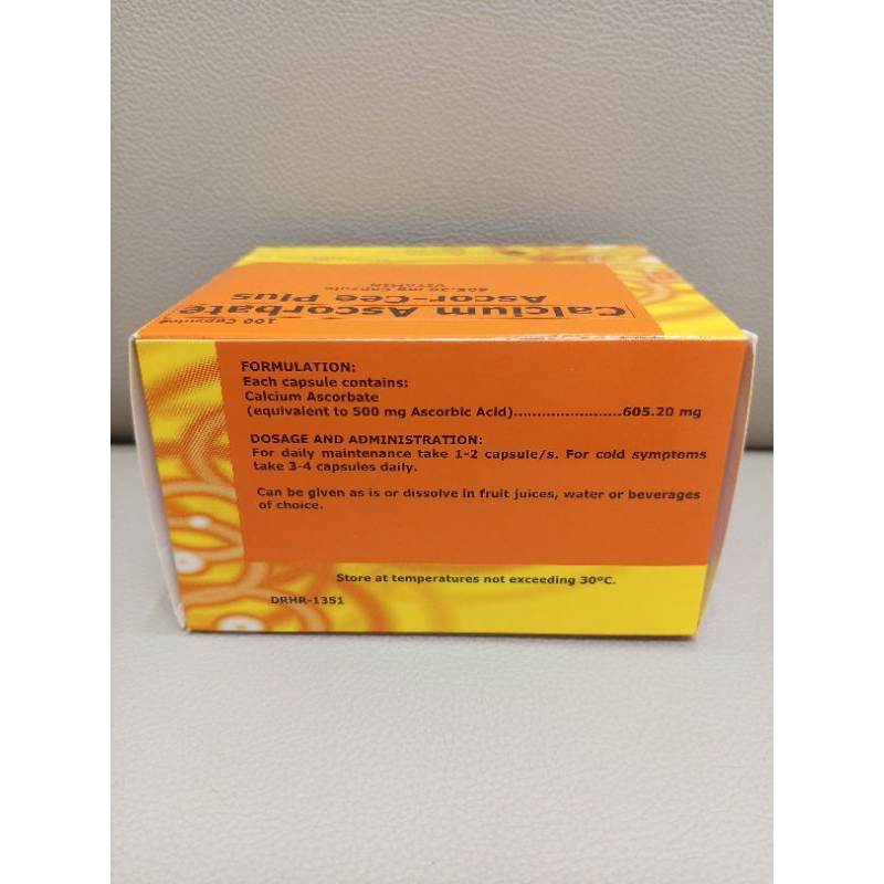 Ascor Cee Plus Calcium Ascorbate Vitamin C 100 Capsules