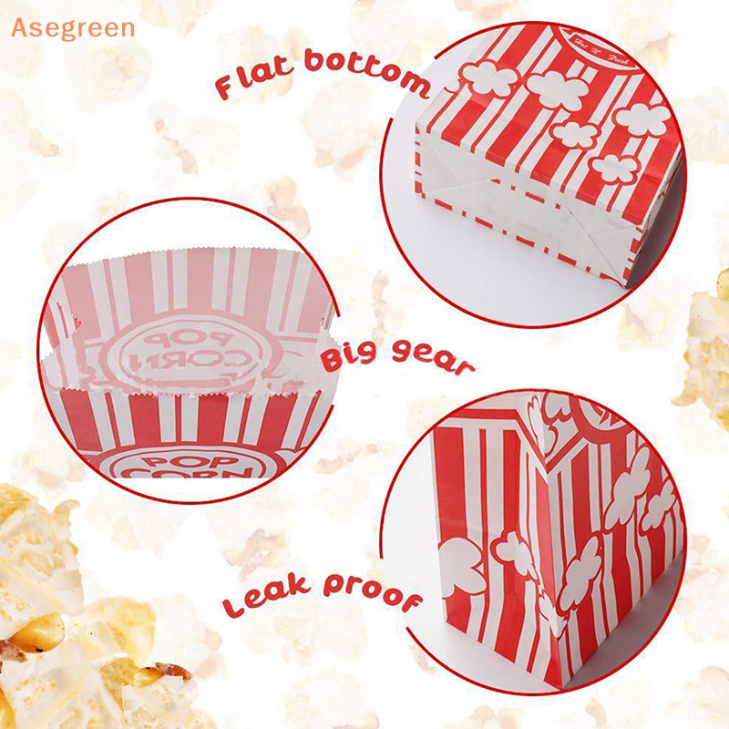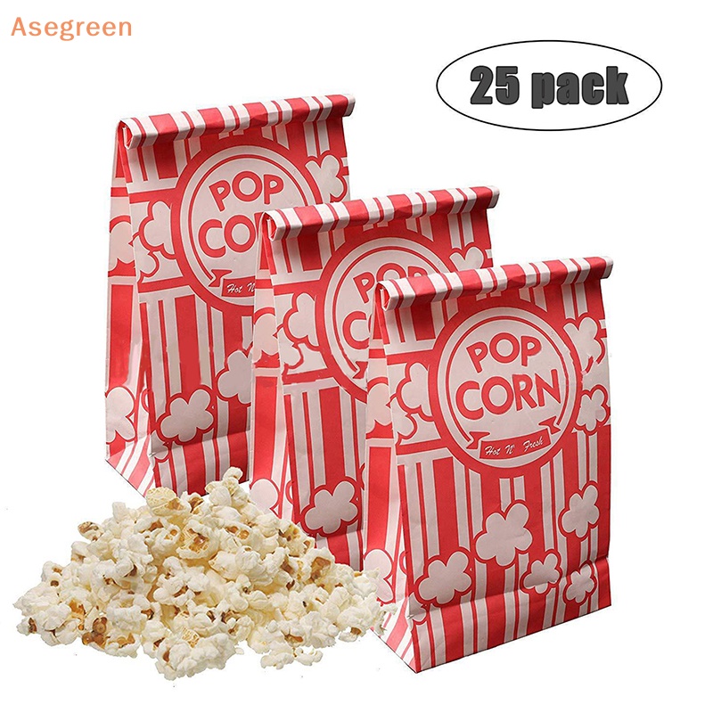 Asegreen 25Pcs Popcorn Packaging Bag Carnival Stripes Bags Holders Bowl Food Containers Portable Cups Snack Paper