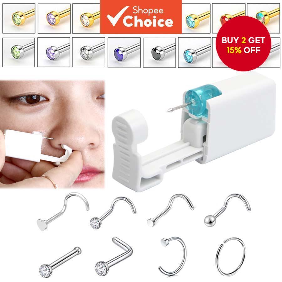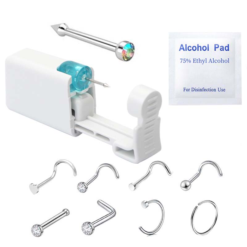 1PC Disposable Nose Piercing Kit Built In Stud Safety Gun 8Pcs Rings Home Use Tools