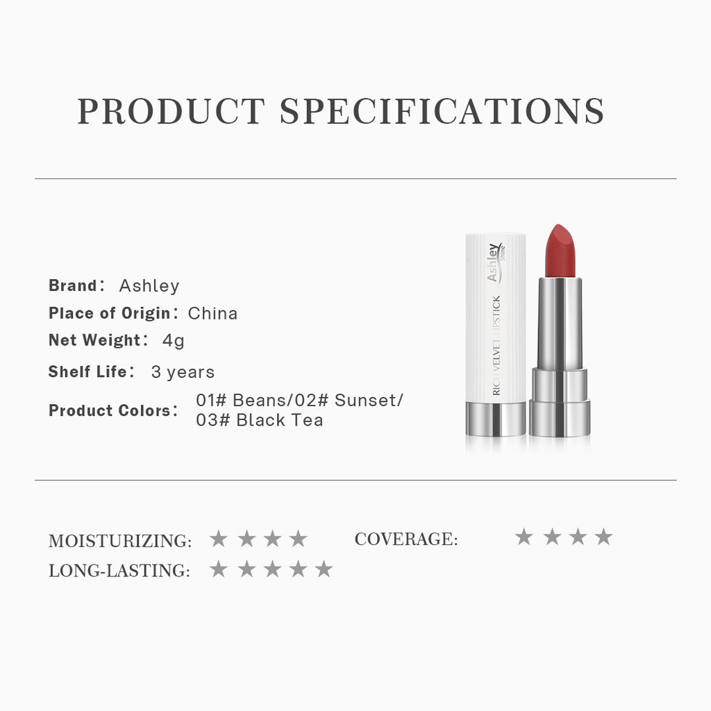 Ashley Shine Rich Velvet Lipstick 4g Long Lasting Matte Lip Glaze Makeup Set AS7214